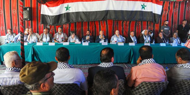 Se celebró este martes en el campamento de Yarmuk en Damasco, el Foro Nacionalista de Damasco, evento organizado por las facciones palestinas y las federaciones populares sirias y árabes bajo el título “Unidos contra el Acuerdo del Siglo… No al Taller de Bahrein….Libertad para el Golán Sirio Ocupado…. Libertad para Palestina y al-Qudus”.