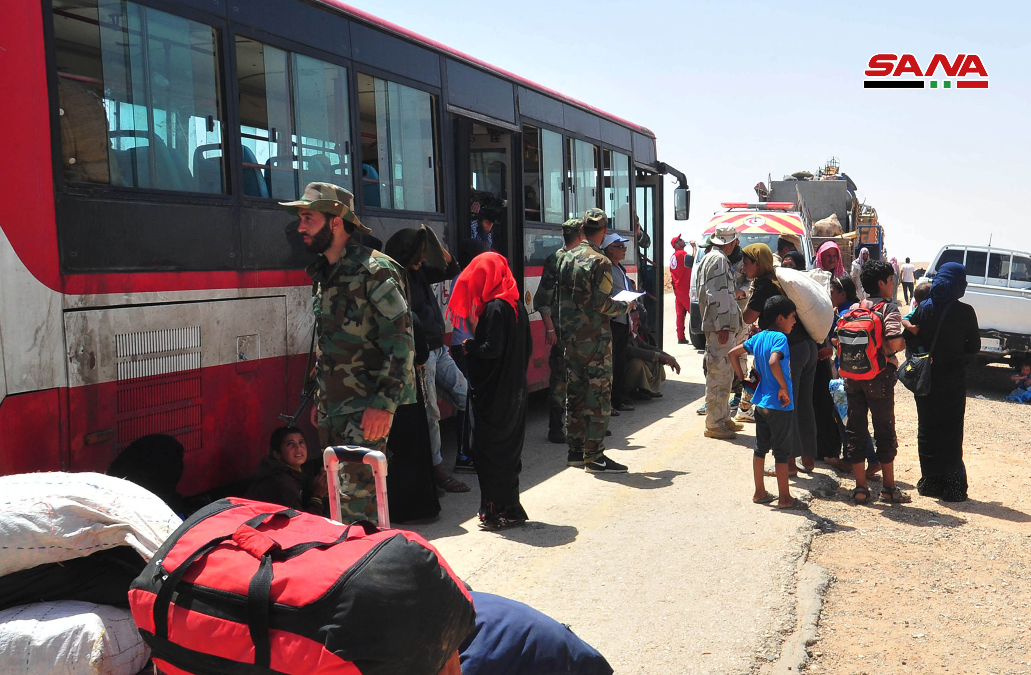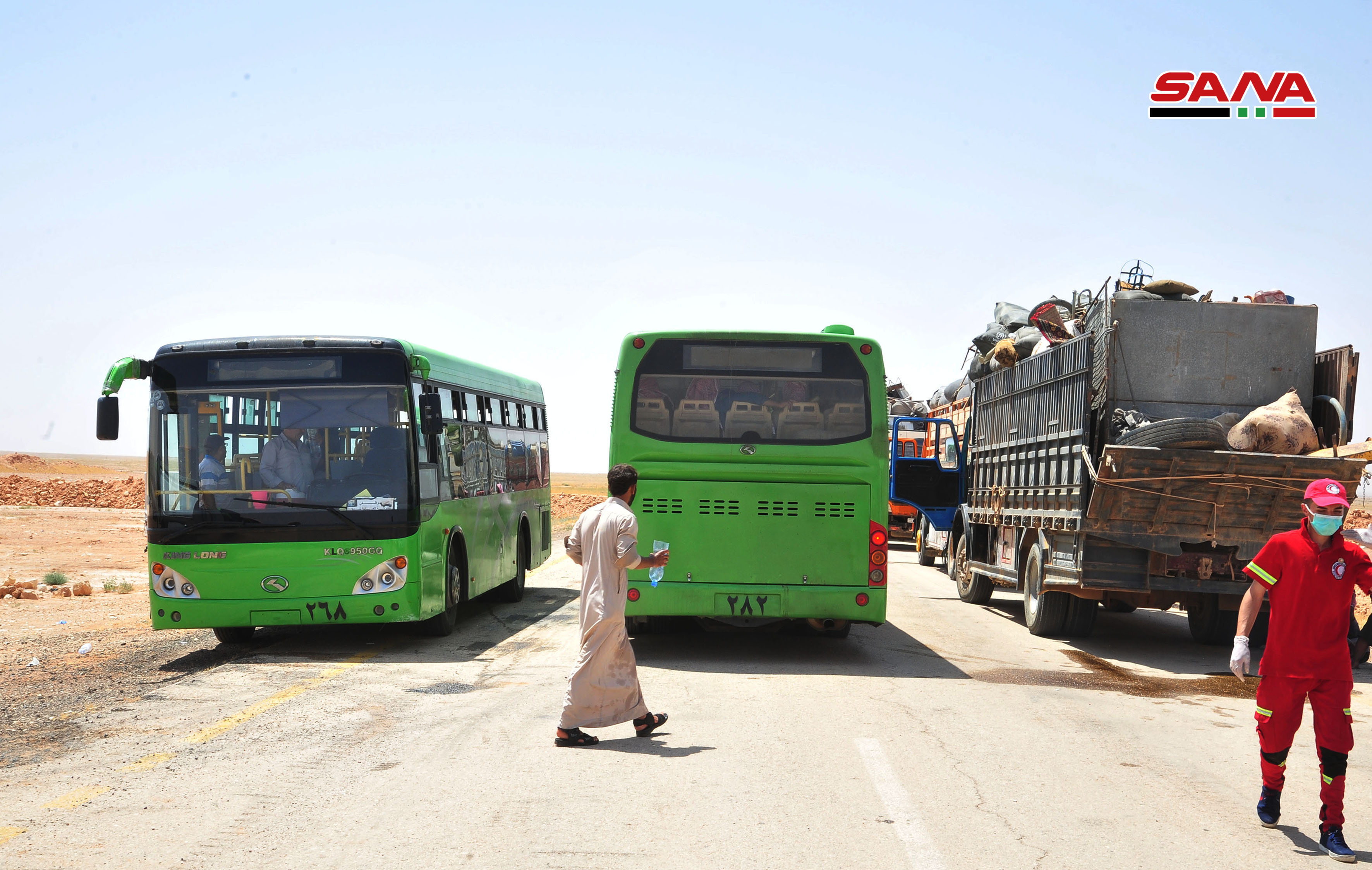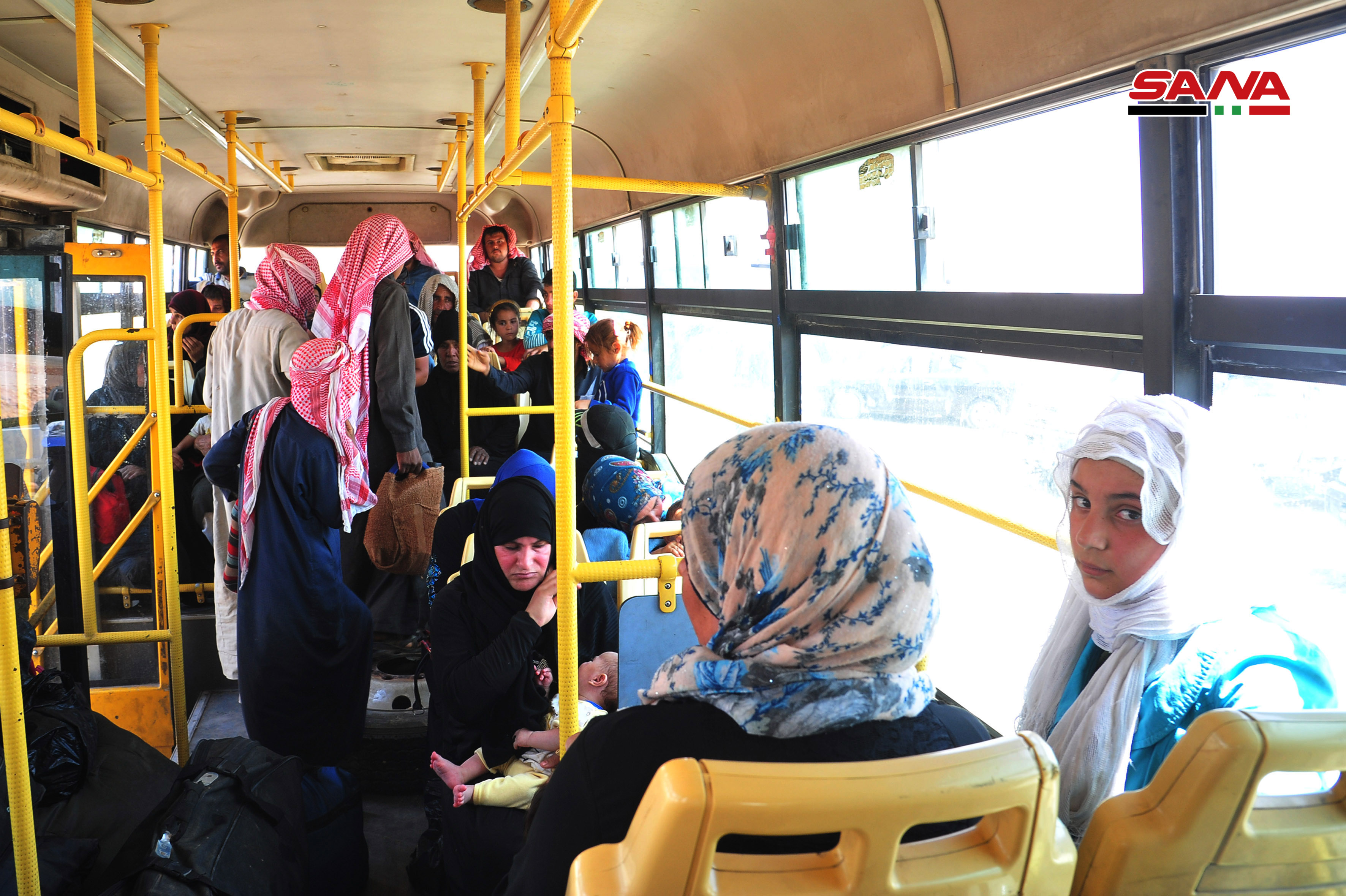 Asimismo los autobuses estaban presentes para transportar a los desplazados y sus hijos a los centros de acogida temporal en la ciudad de Homs, antes de que se dirijan a sus hogares en las zonas liberadas del terrorismo.