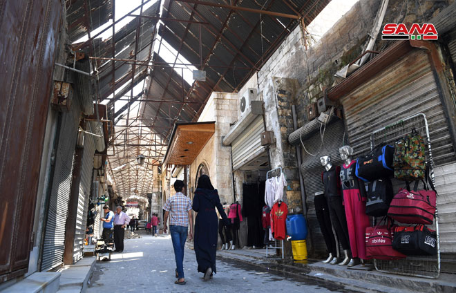 30/06/2019 Alepo, SANA La vida ha vuelto a varios mercados del casco antiguo de Alepo tras intensas obras de rehabilitación y restauración. Los barrios orientales de Alepo fueron liberados del terrorismo en diciembre del 2016. F. Marouf/ Ammar H. Vuelve la vida a los mercados antiguos de Alepo. (+ fotos) 2019-06-30 ammar