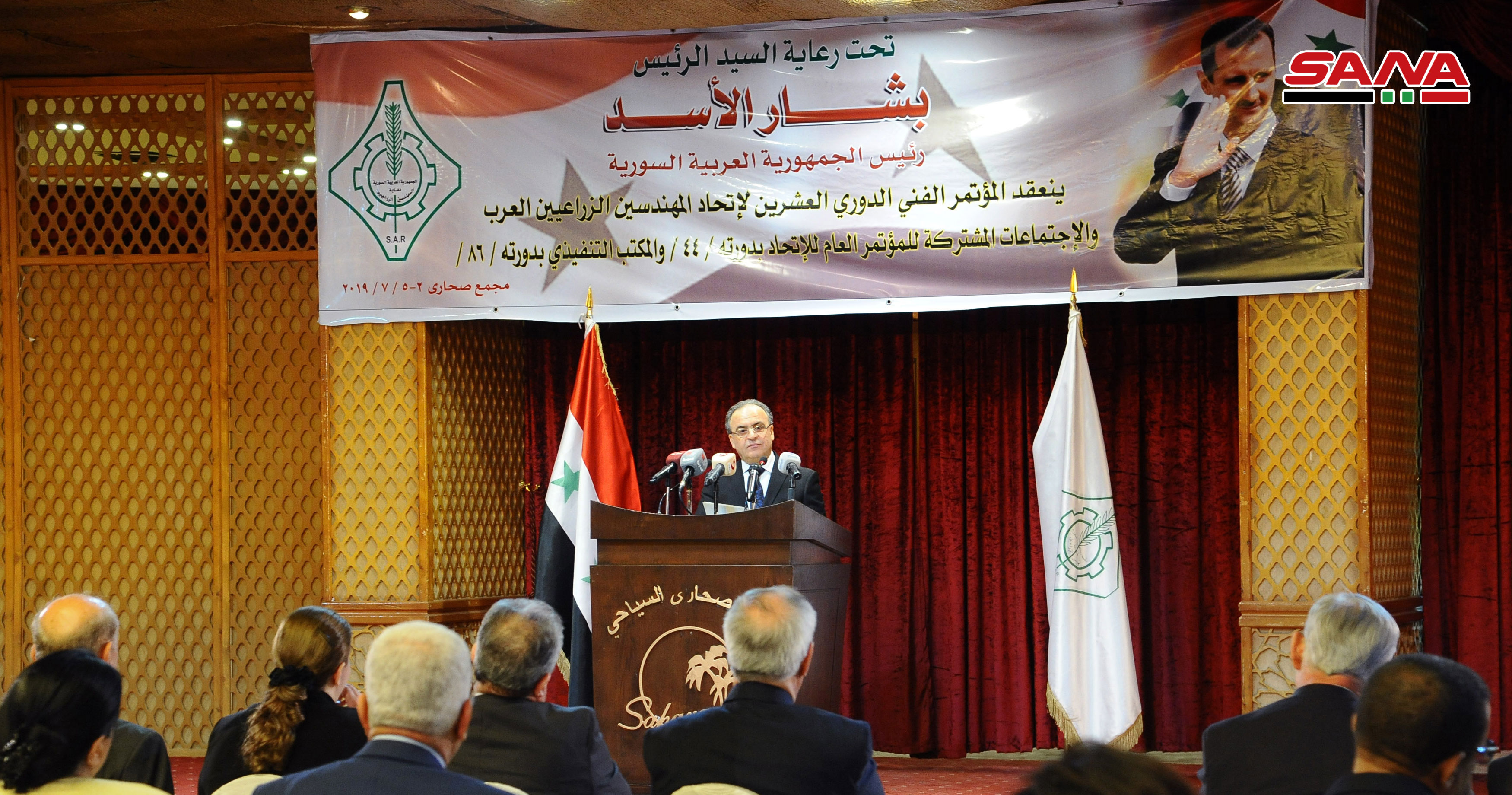 Aludió al importante papel de los ingenieros agrícolas en apoyar al Estado en reinvertir en miles de hectáreas liberadas del terrorismo, y en mantener a decenas de centros científicos agrícolas, para que el sector agrario vuelva a ser uno de los pilares principales de la seguridad alimentaria en Siria tal como lo era antes de la guerra.