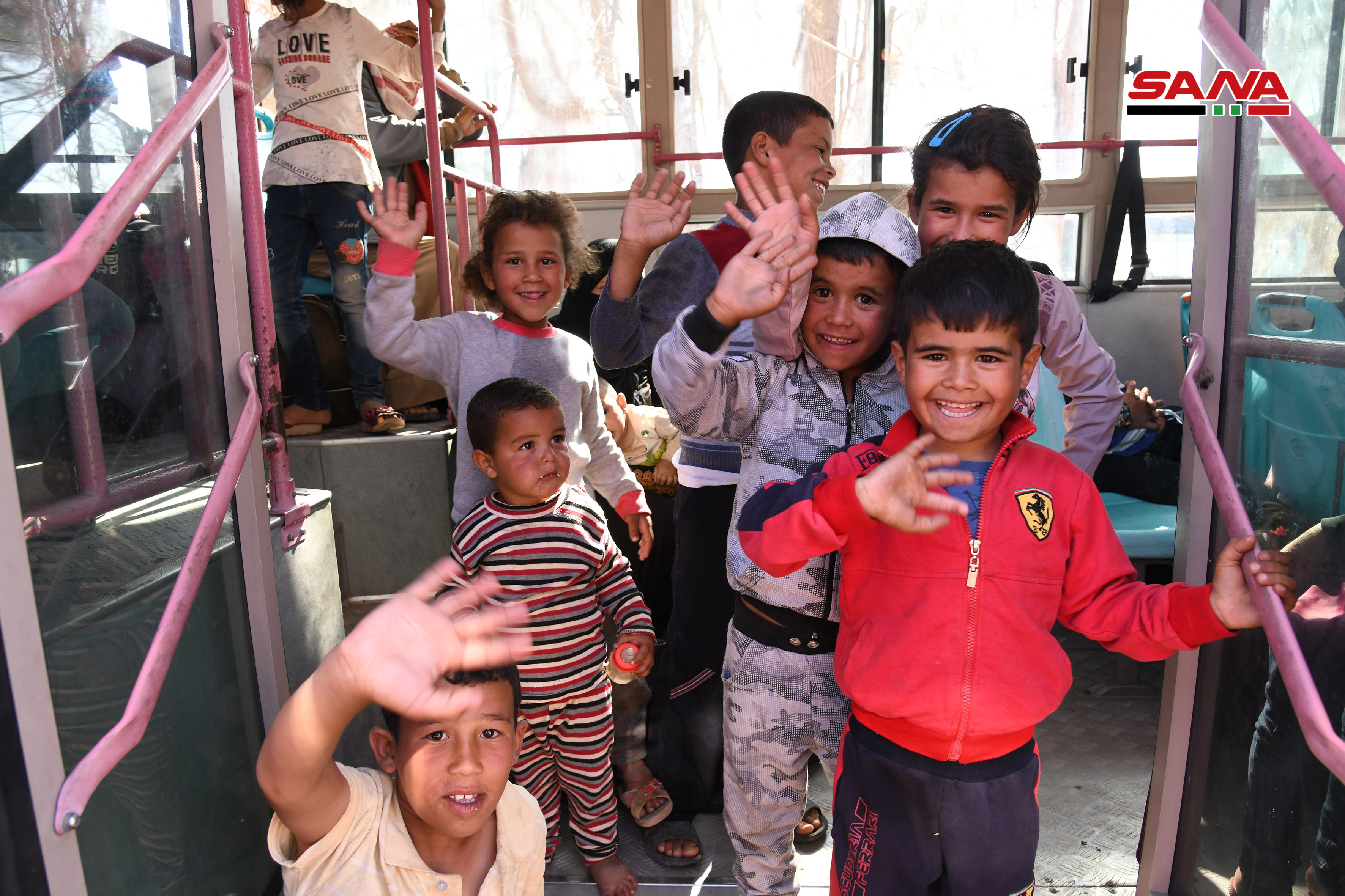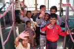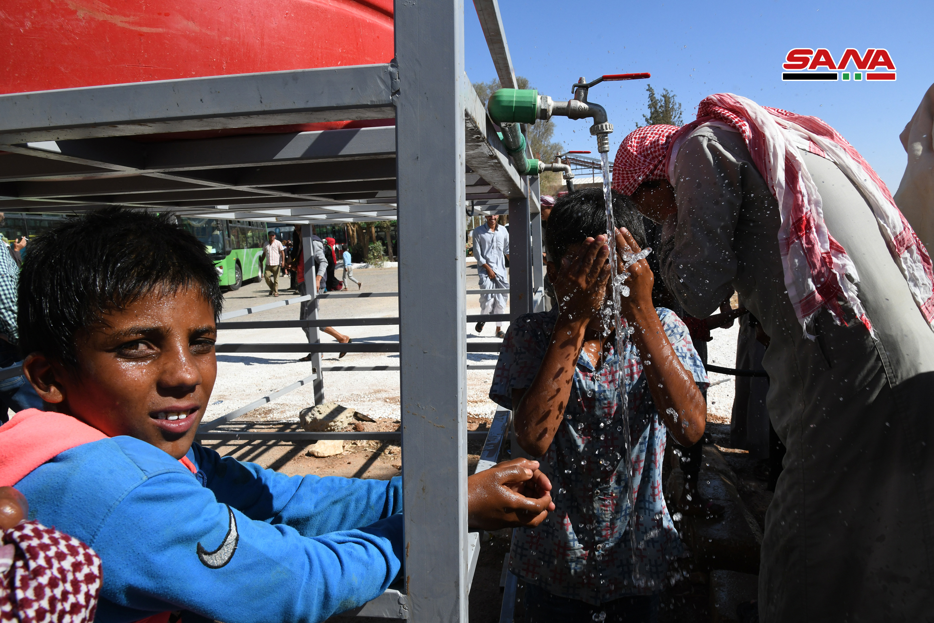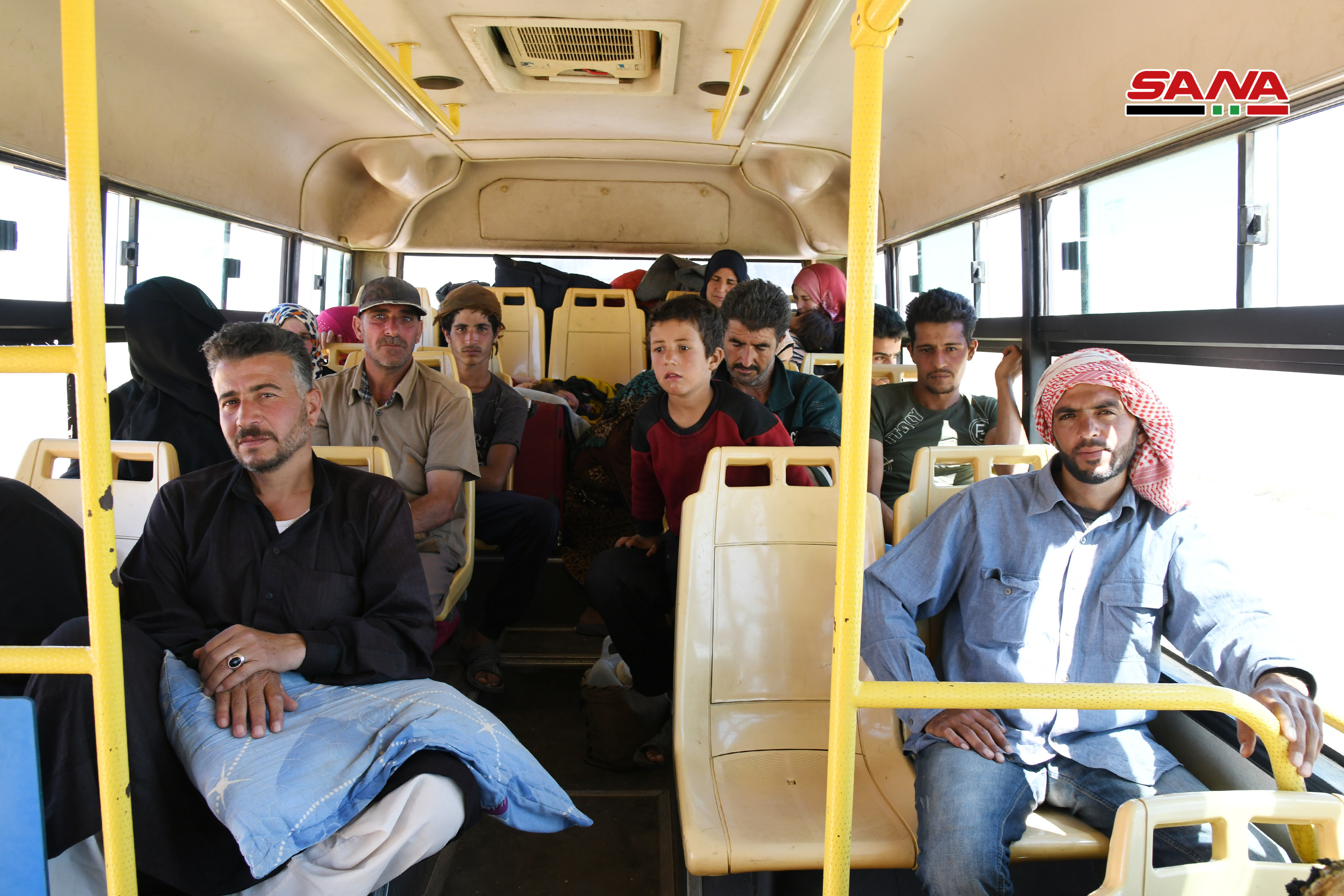 Los voluntarios de la Media Luna Roja Árabe Siria y los equipos médicos prestaron a los desplazados alimentos y atención médica, y luego fueron trasladados en autobuses a centros de residencia temporal en la provincia de Homs para luego dirigirse a sus poblados de origen.