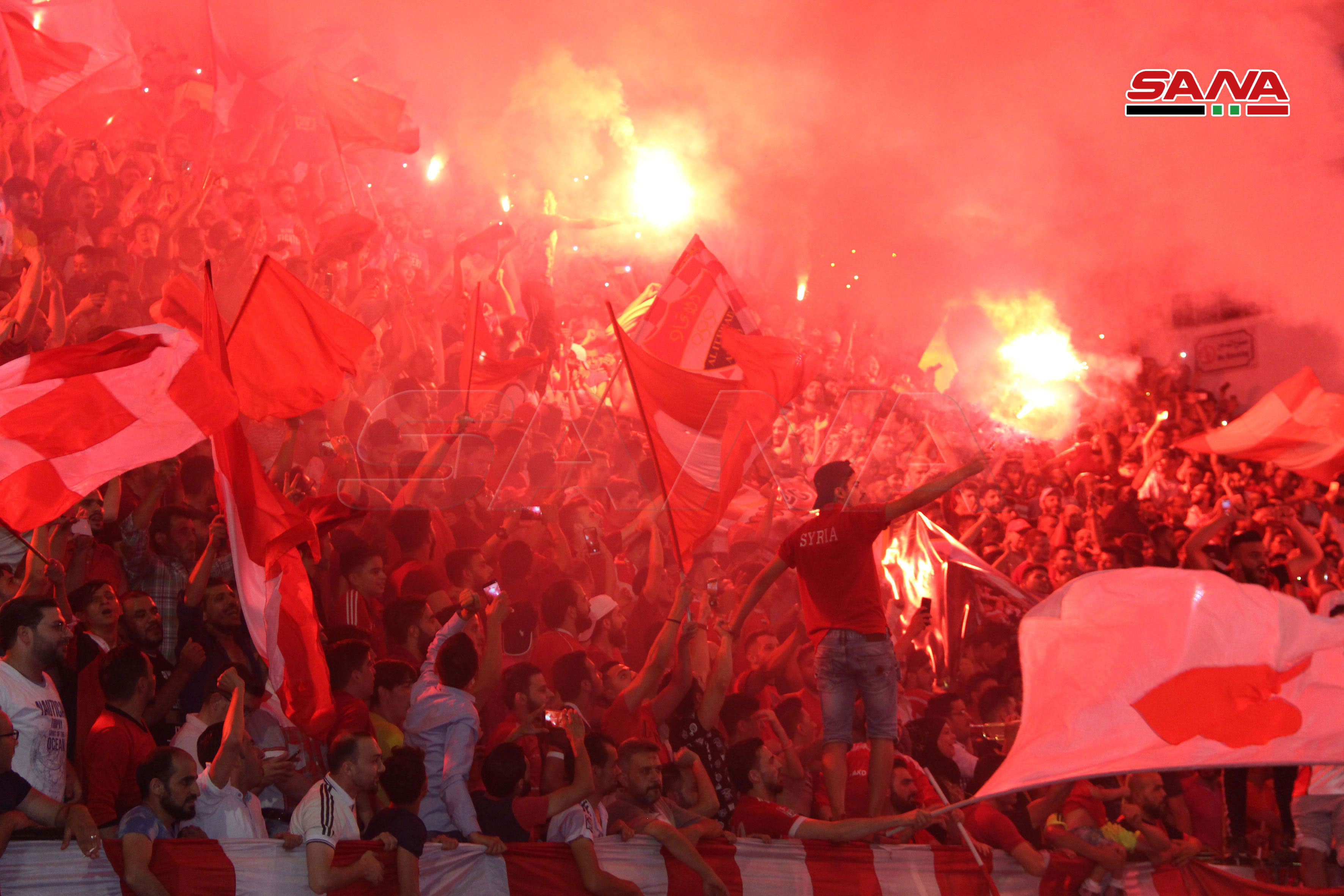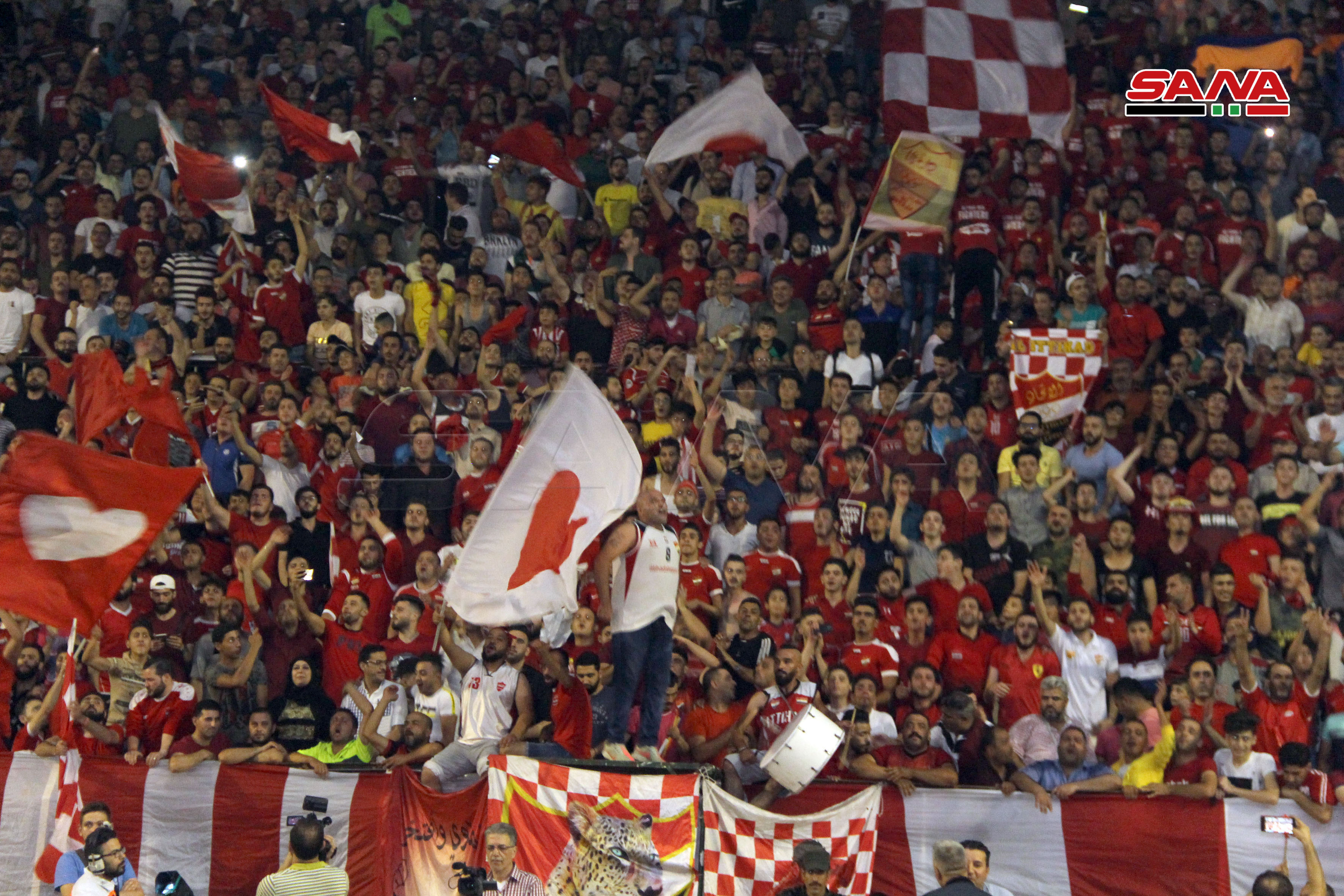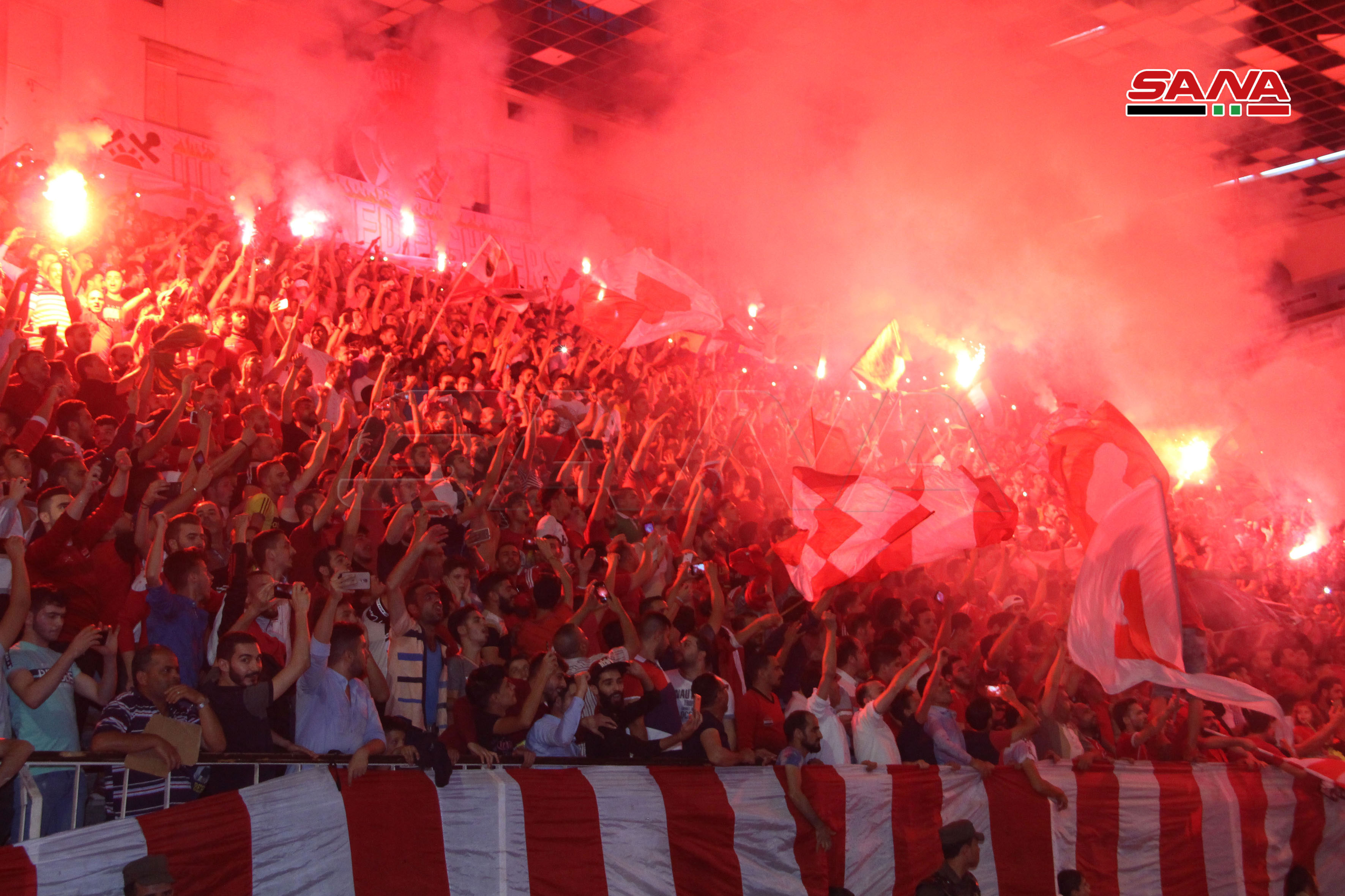 Miles de aficionados llenaron la sala deportiva Al-Assad en la ciudad de Alepo.