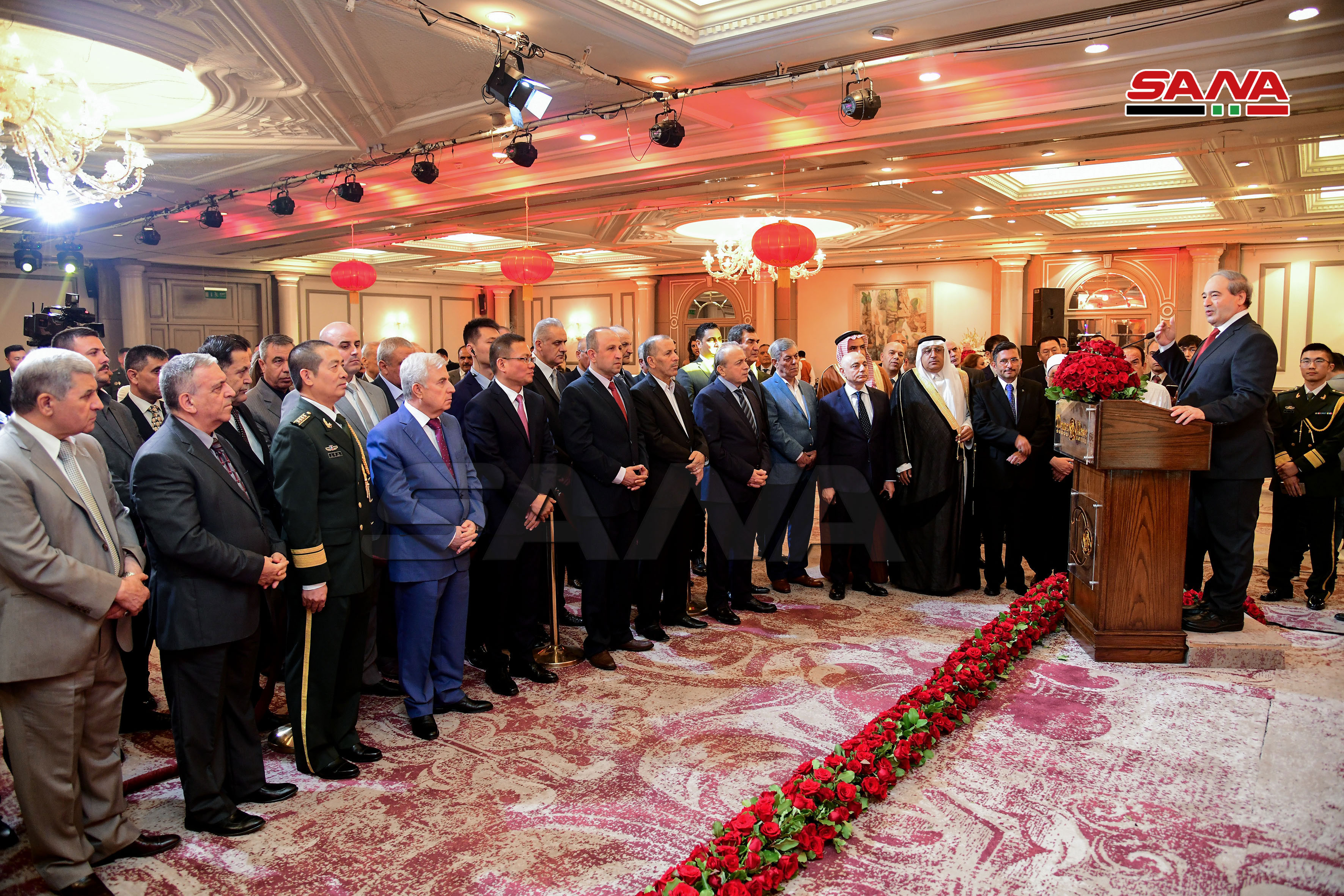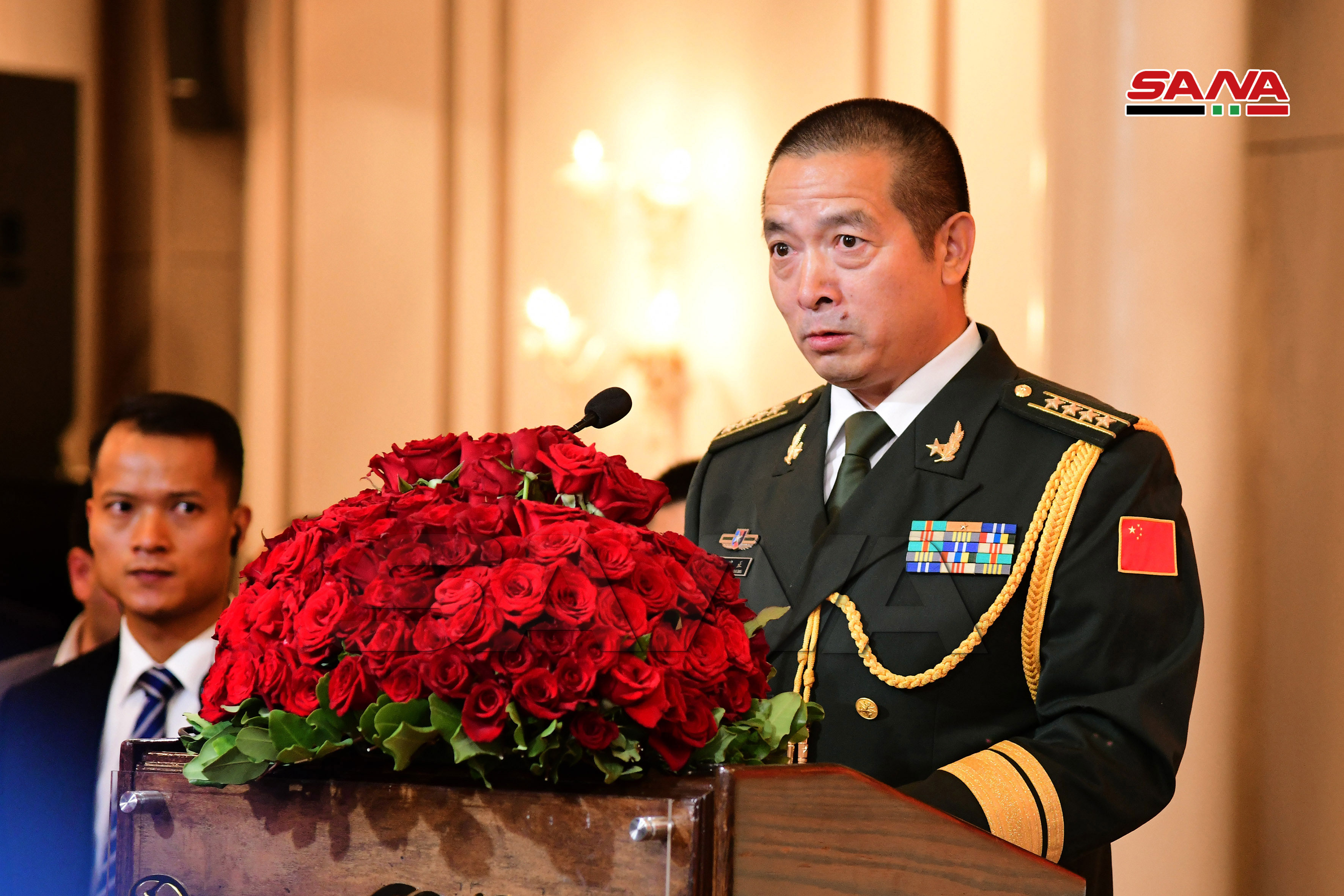 El agregado militar en la embajada china, Wang Rui Cheng, dijo en un discurso que su país mantendrá su firme apoyo a Siria en su empeño por preservar su soberanía, independencia e integridad territorial, y en la lucha contra el terrorismo y también en el proceso de reconstrucción.