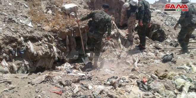 El 17 del pasado mes, las autoridades competentes en cooperación con los habitantes de al-Mayadin se dieron con un depósito que abarcaba proyectiles caseros y sustancias de alto poder explosivo.