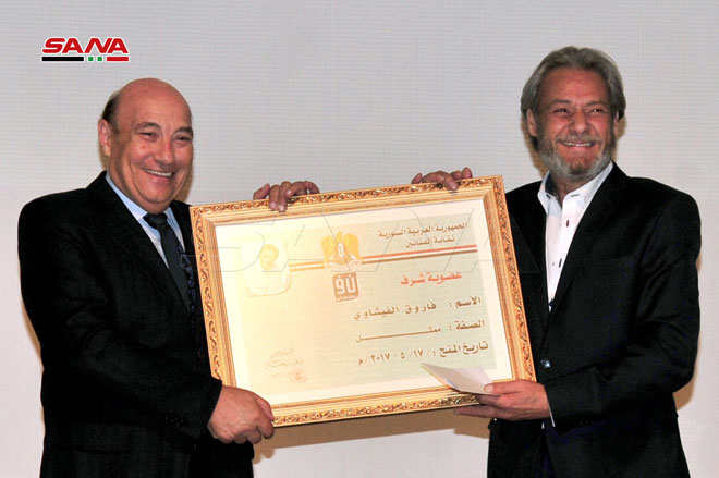 El escudo de la Unión de Artistas Sirios fue otorgado a al-Fichaoui como miembro honorario de la misma con motivo del Festival de Artistas que se celebró en mayo de 2017