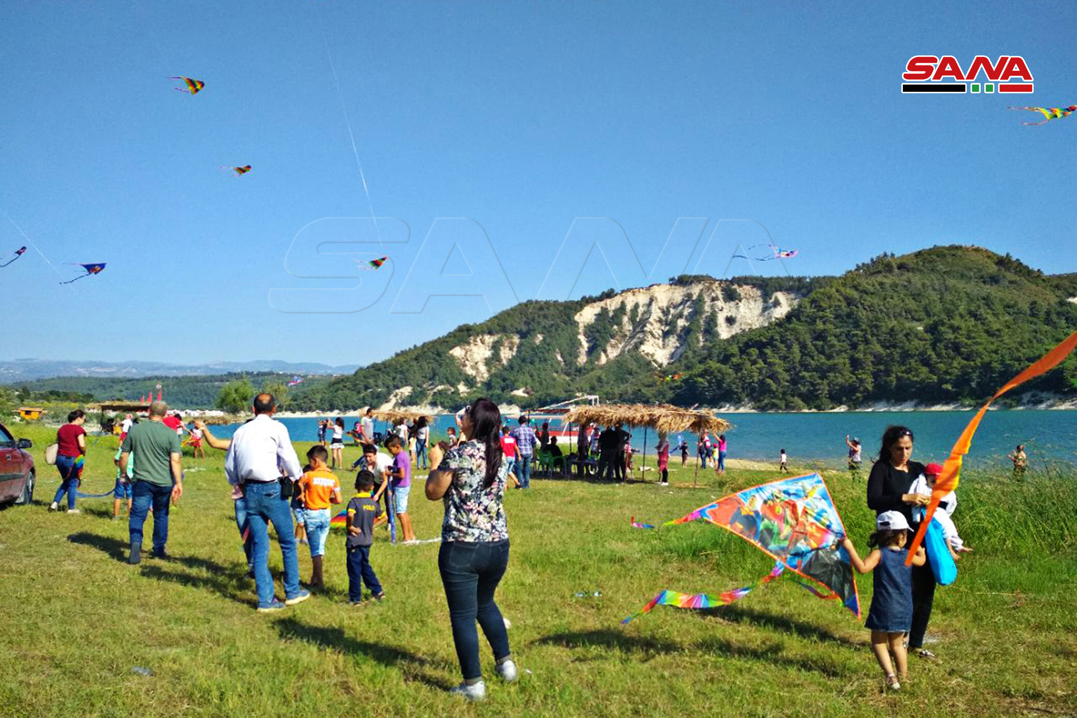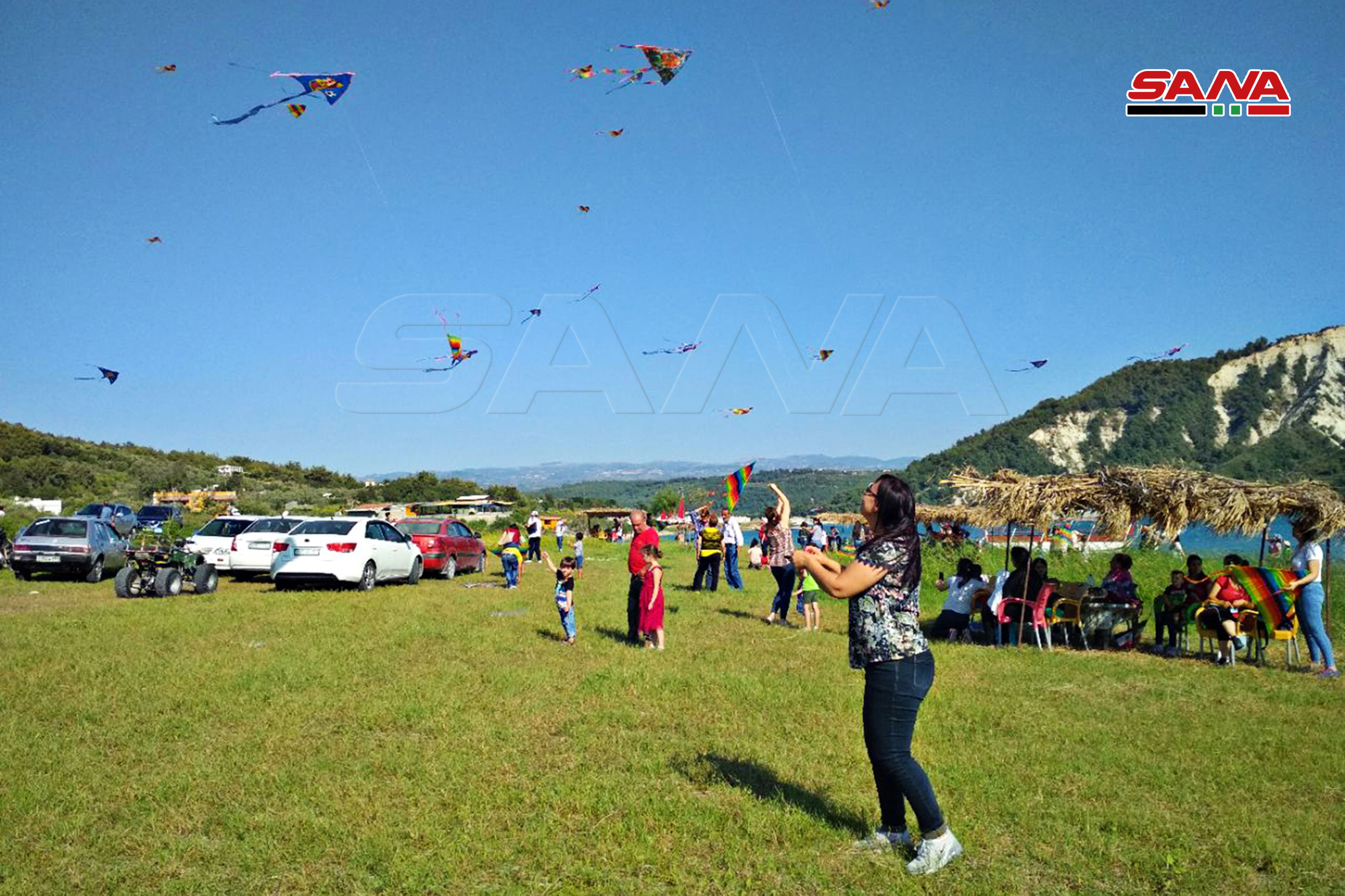 Más de 400 niños participaron en el Festival de Cometas en el poblado de Tareqiya en el campo de la provincia costera de Latakia.