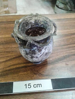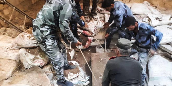 La Dirección General de Antigüedades y Museos en la provincia de Hama recuperó una caja que contiene cientos de piezas antiguas, incluidas joyas, estatuas y macetas de barro y vidrio, que datan de diferentes épocas históricas, y fueron saqueadas y ocultadas por los grupos terroristas armados.
