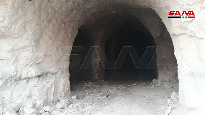 Nuestro corresponsal de guerra informó que unidades del ejército encontraron cuevas y redes complejas de túneles excavadas en las montañas de la estratégica zona de Wadi al-Anz, allí encontraron bases de control y mando y en su interior el periodista pudo ver medicamentos, equipos médicos occidentales y folletos sauditas takfiristas.
