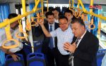 Acto seguido, el embajador chino dio un recorrido a bordo de uno de los autobuses de transporte público, donde escuchó a algunos pasajeros observaciones y sugerencias sobre los autobuses donados por la RPDC.