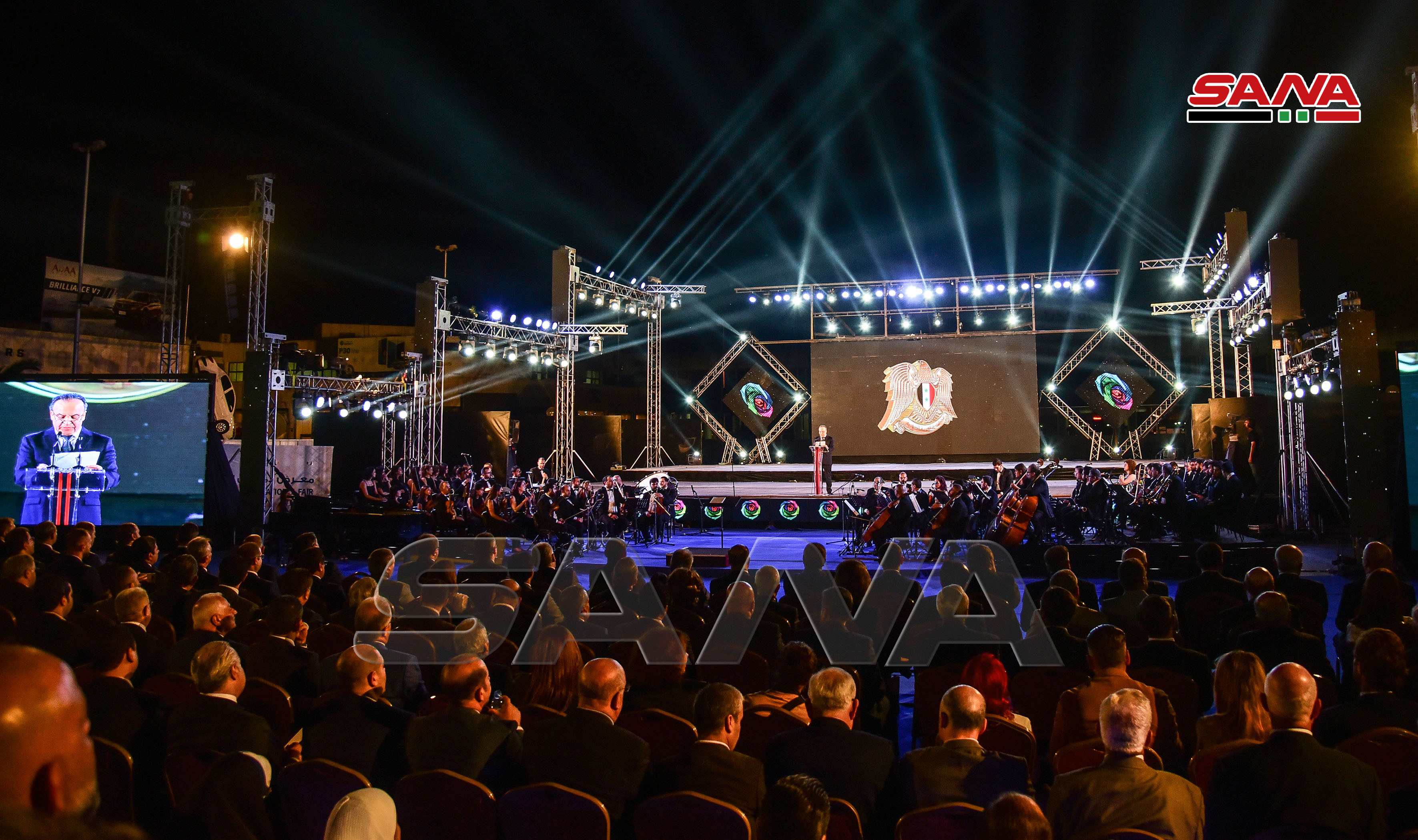 En una palabra pronunciada en el acto inaugural, Khamis dio la bienvenida, en nombre del presidente al Assad, a los invitados de Siria, afirmando que la Feria Internacional de Damasco vuelve hoy en día a cumplir su mensaje económico y social, así como su papel de enlace entre el Este y el Oeste, y de puente del intercambio comercial y la cooperación en materia de inversión y cultura entre los pueblos libres.
