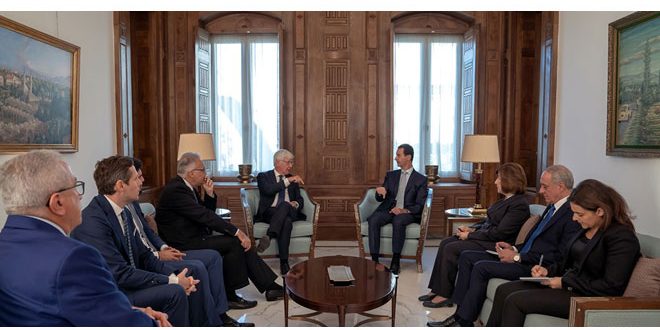 El presidente Bashar al-Assad, recibió hoy a una delegación integrada por parlamentarios y políticos italianos encabezados por el senador Paolo Romani.