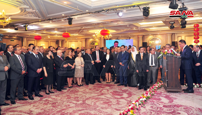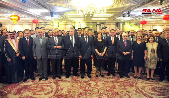En unas palabras pronunciadas ante los asistentes, el Viceprimer Ministro y Ministro de Exteriores y Expatriados, Walid al-Moallem, felicitó a China y a su pueblo amigo por el 70 aniversario del Día Nacional, y llamó a impulsar las relaciones bilaterales en todos los campos.
