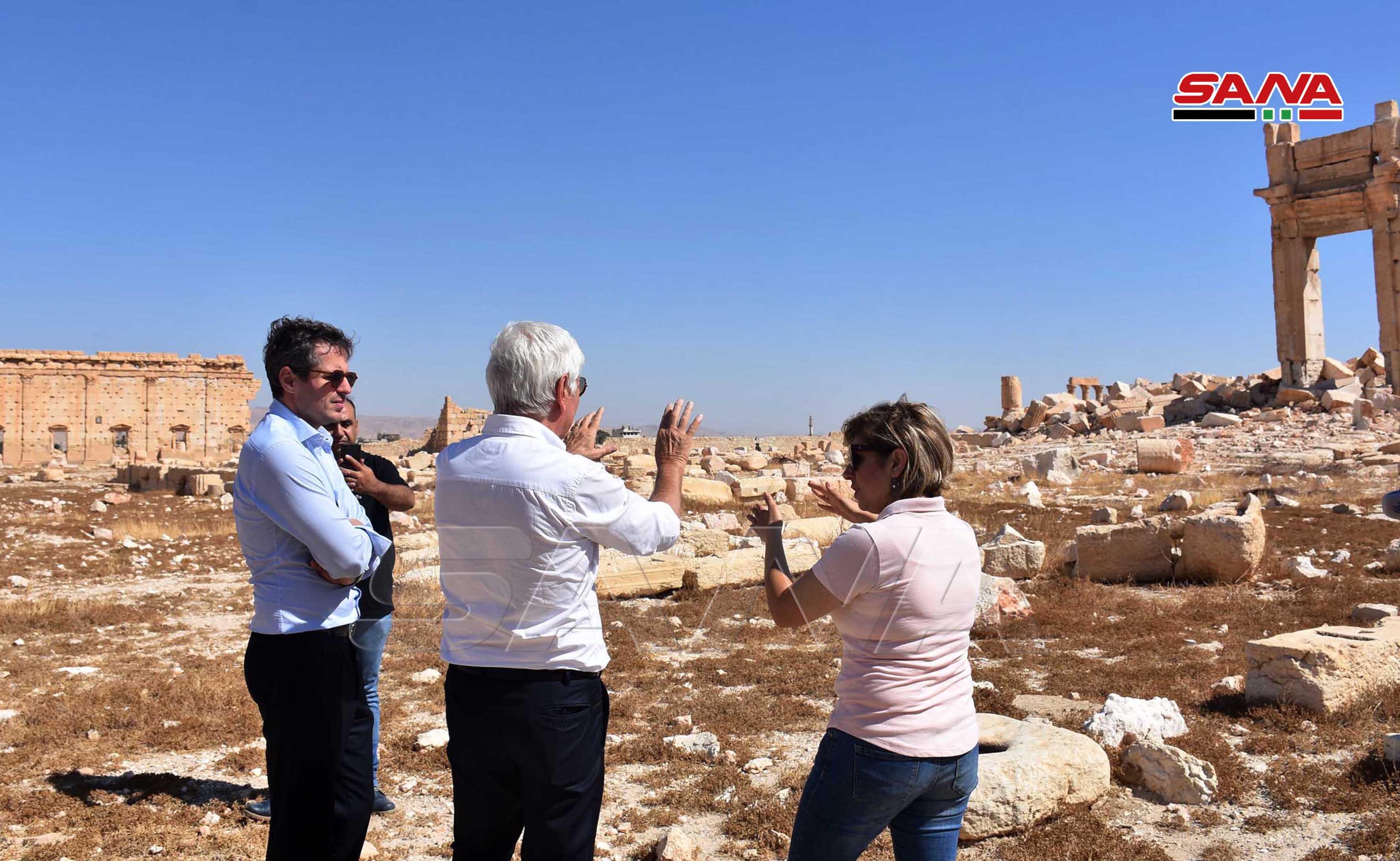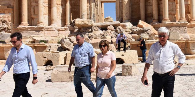 Los miembros de la delegación recorrieron varios sitios arqueológicos de la ciudad tales como el templo de Bel, el teatro romano, y el Decumano, lamentando la destrucción y el sabotaje causados por los terroristas de Daesh en algunos monumentos.