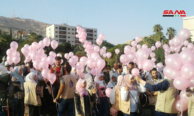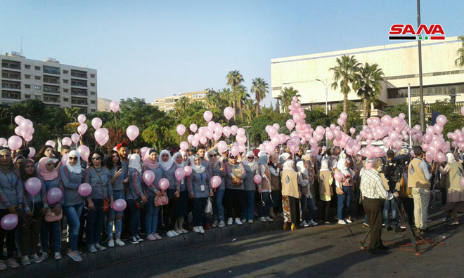 02/10/2019 Damasco, SANA fm/ed Mil voluntarios participan en la campaña nacional de detección temprana del cáncer de mama 2019-10-02 Esraa