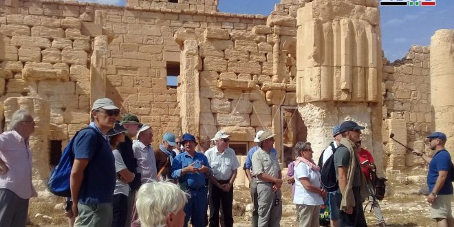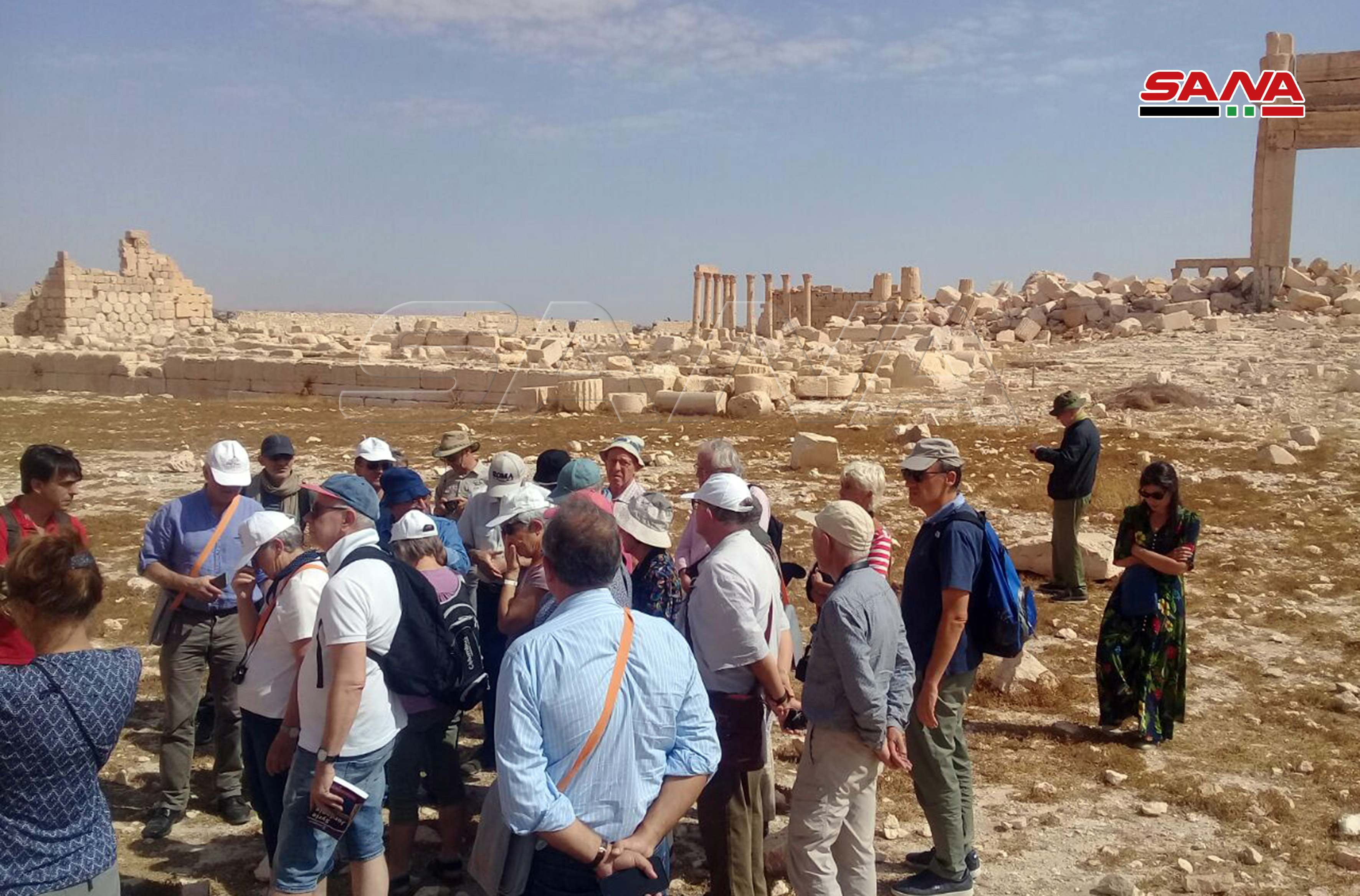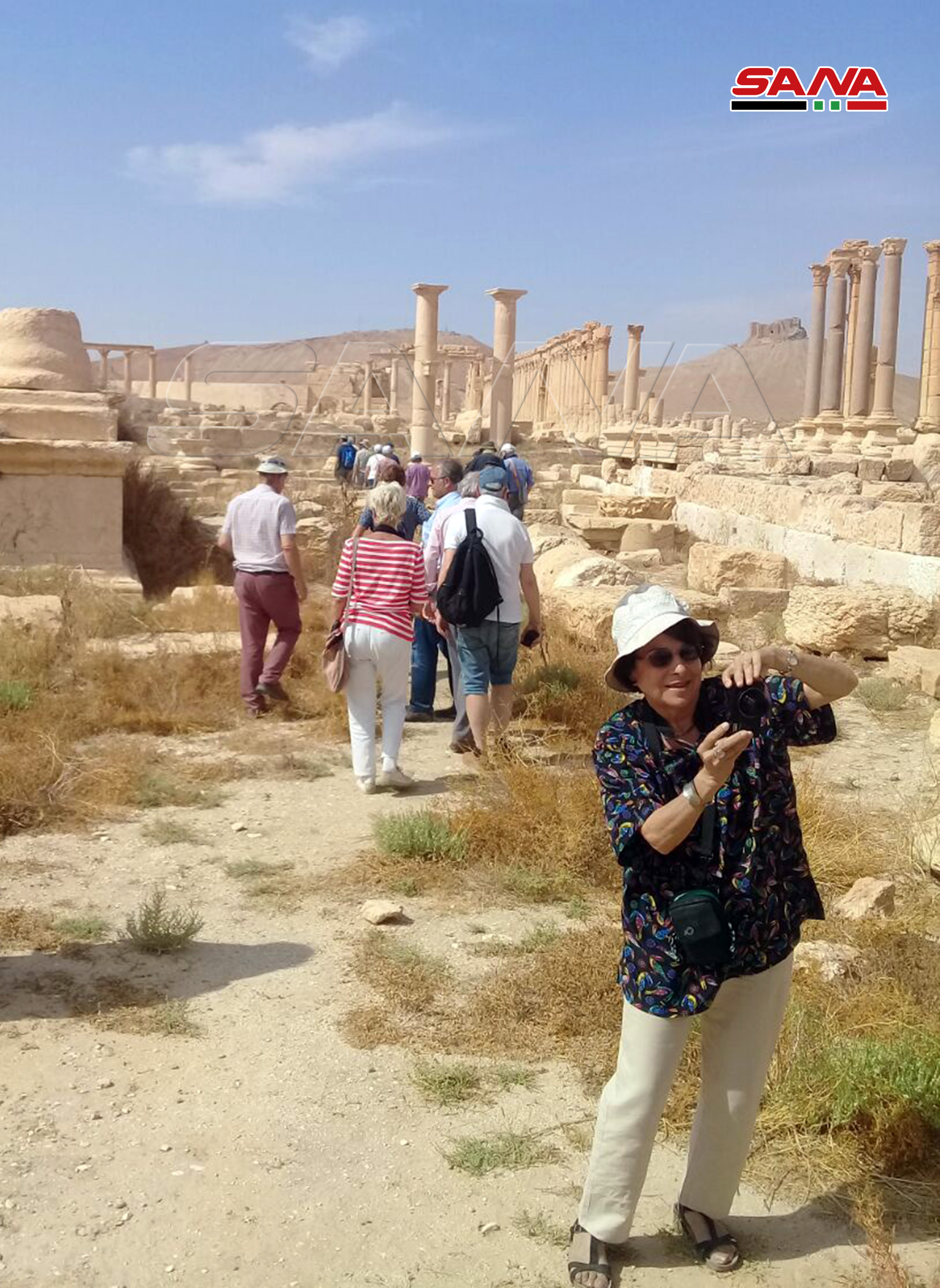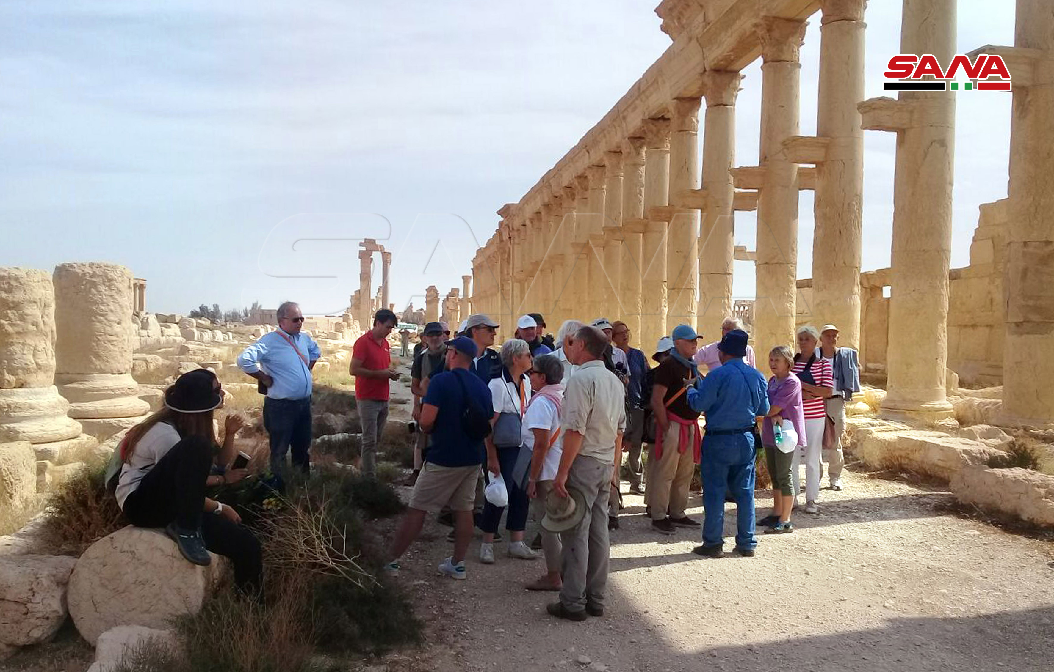 Un grupo de 26 turistas de nacionalidad francesa y portuguesa hicieron un recorrido en la ciudad de Palmira situada en el seno del desierto sirio.