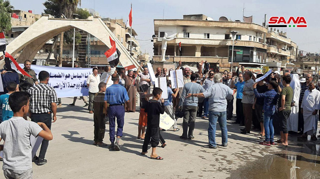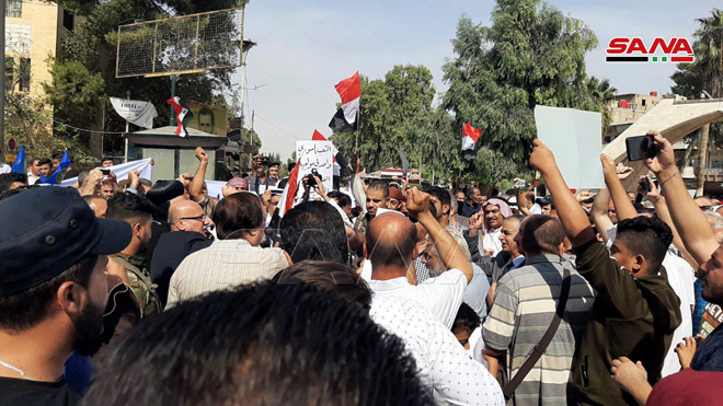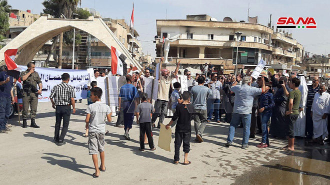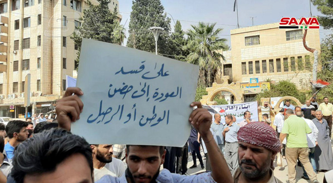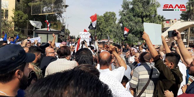 La provincia de Hasakeh fue escenario hoy de manifestaciones populares en protesta a la agresión turca contra el territorio sirio.