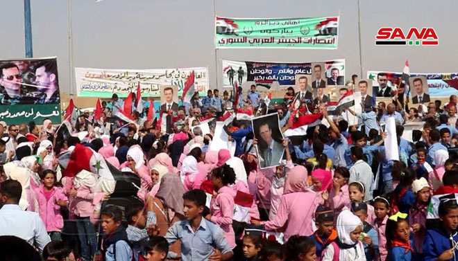 Los habitantes de la provincia oriental de Deir Ezzor se dieron cita hoy para celebrar las victorias del ejército sirio y su entrada en numerosas ciudades y localidades en las provincias de Hasakeh, Raqa y Alepo.