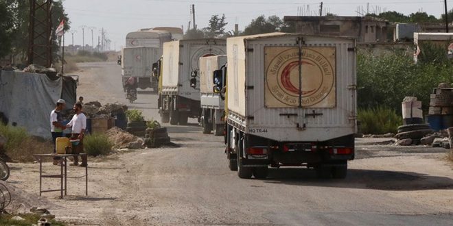 La Organización de Media Luna Roja Árabe Siria (MLRAS) continuó la distribución de ayuda humanitaria a los civiles más necesitados en las localidades de Taybeh y Saida en el campo oriental de Deraa.