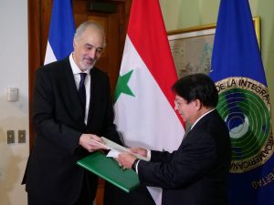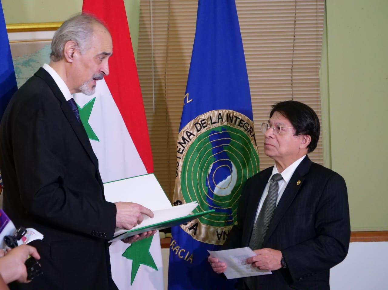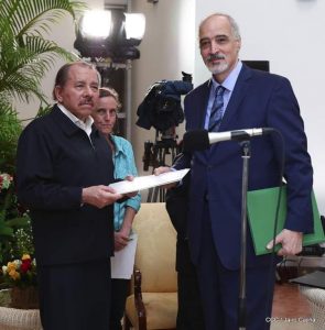 El embajador de Siria ante la ONU, Bashar Jaafari, presentó sus cartas credenciales al presidente de la República de Nicaragua, Daniel Ortega, en calidad de embajador extraordinario y plenipotenciario concurrente desde Naciones Unidas, Nueva York.