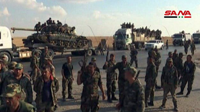Desde el día 13 del mes en curso, las unidades del ejército comenzaron a desplegarse en la ciudad de Tel Temer y otras localidades en el campo de Hasakeh, y en las ciudades de Manbej y Ain Arab en el campo noreste de Alepo, y en las ciudades de Ain Issa y Tabqa y su aeropuerto militar en el campo de Raqa.