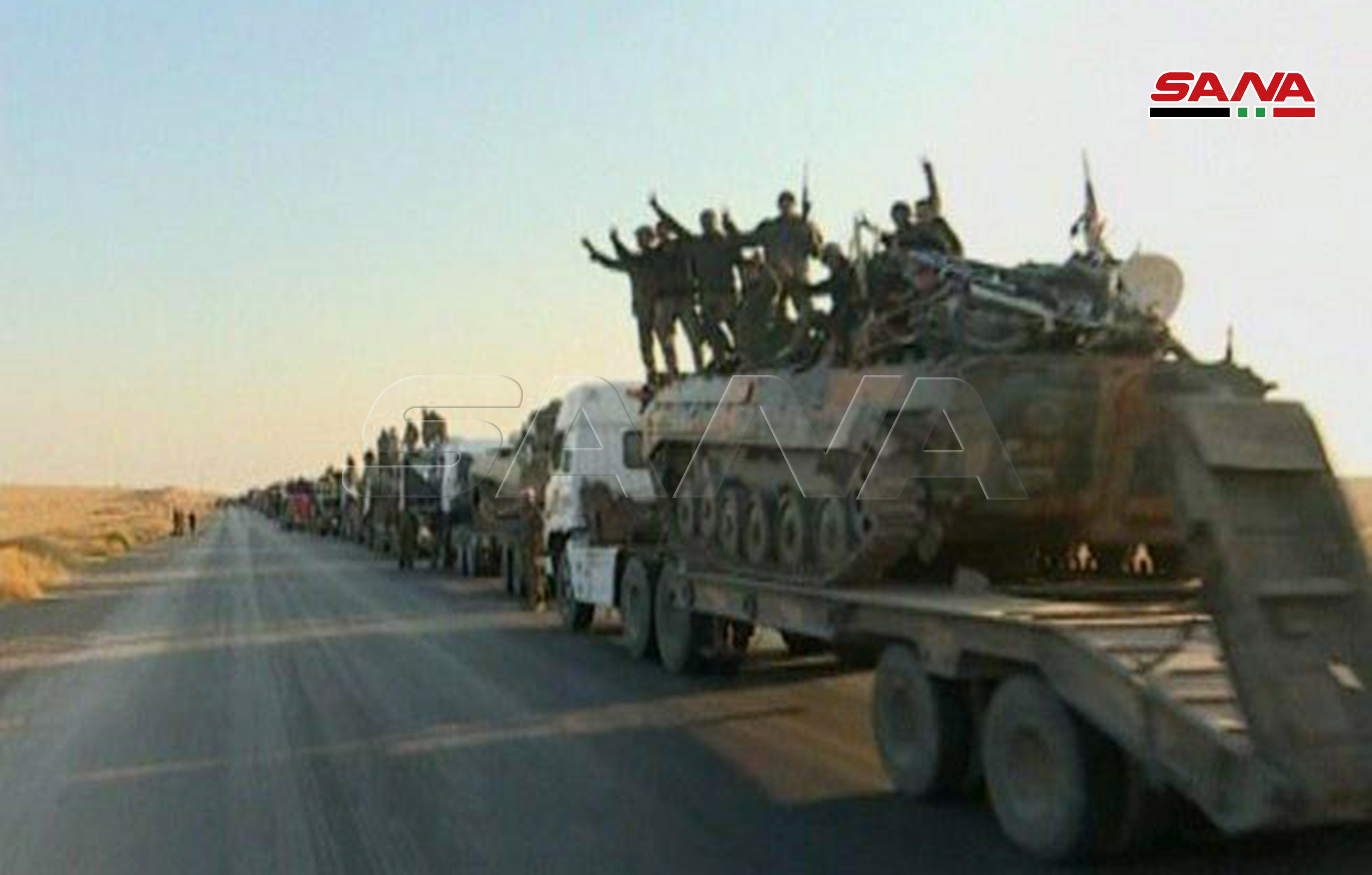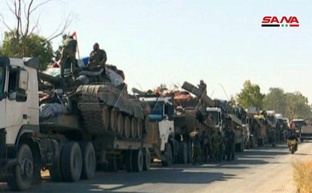 En la campiña de Raqqa, el reportero de SANA informó que decenas de vehículos militares, blindados y camiones del ejército árabe sirio –con sus dotaciones- se dirigieron a los campos de Raqqa y Hassaka en marco de su despliegue en dichas zonas con la misión de restaurar la seguridad y la estabilidad allí.