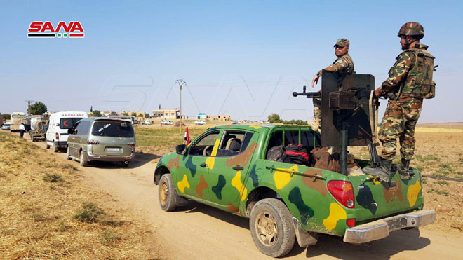 El reportero de SANA en la provincia nororiental informó que contingentes del ejército continuaron su despliegue en las zonas rurales del noroeste de Hasakeh, donde ingresaron ya en ocho poblados situados cerca de la carretera Tel Tamer Ras Ain y son: (Qasmiya, Rashidiya, Dawudiya, Aziziya, Sibatiya, Yamiliya, Kherbet Debs y Zahra) llegando a las proximidades de la frontera siria con Turquía.