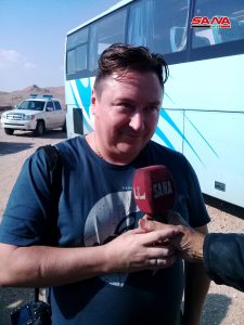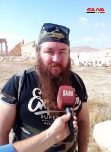 “Desafortunadamente, no tuve la oportunidad de ver la antigua ciudad de Palmira antes de que fuera destruida por los terroristas que llevaron a cabo estos crímenes como evidencia adicional de que no tienen nada que ver con la humanidad”, dijo Vladimir Rajil, el jefe del grupo a SANA, y expresó su felicidad por ver que los ciudadanos regresando a Palmira y que la actividad turística está volviendo a florecer en la misma.