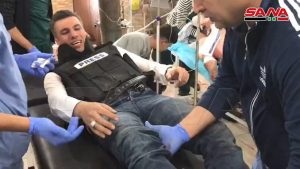 En los choques, el corresponsal y dos camarógrafos del Noticiero de la televisión siria resultaron heridos con metrallas de un obús de tanque que estalló cerca de donde se encontraban cubriendo los hechos.