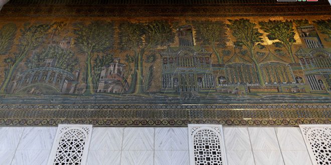 Nazir Awad, subdirector general de la Institución de Antigüedades y Museos, comentó a SANA sobre el tema y dijo que el mosaico refleja una de las artes omeyas más importantes, donde los artesanos de Damasco pusieron toda su experiencia artística y decorativa en la mezquita que se construyó entre los años 705 y 715.