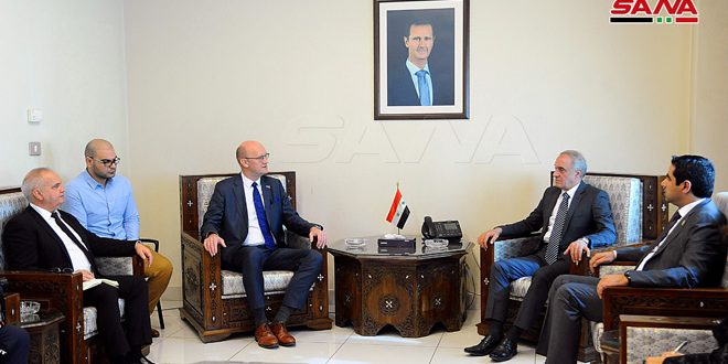 El Ministro Asistente de Exteriores y Expatriados, Ayman Sousan, se reunió hoy con una delegación parlamentaria alemana encabezada por el diputado Frank Pasemann, jefe del Grupo de Contacto sobre Siria en el Parlamento.