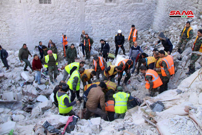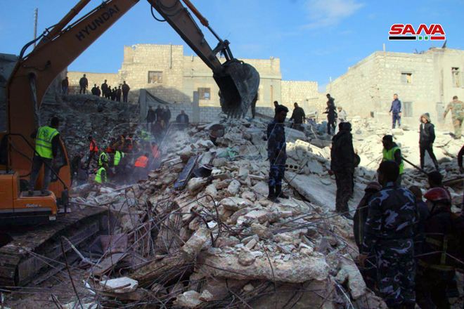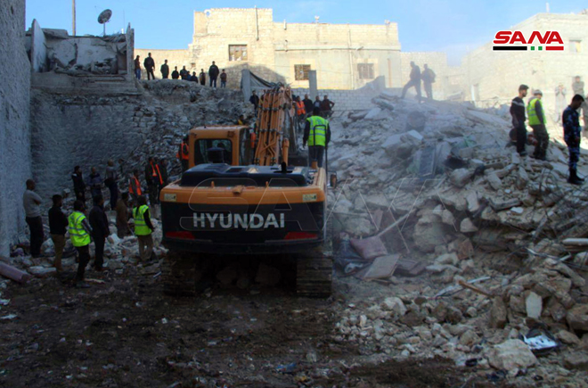 El corresponsal de SANA afirmó que cinco cuerpos fueron recuperados de entre los escombros, mientras los equipos de rescate y la defensa civil siguen trabajando para levantar los escombros para buscar sobrevivientes.