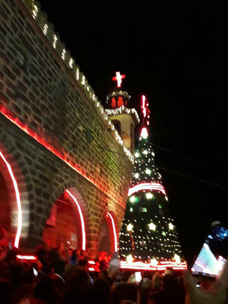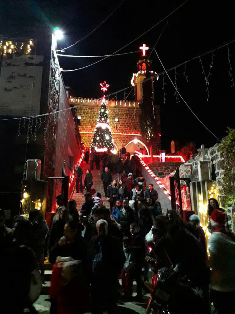 La Iglesia de Nuestra Señora de la Transición en la provincia de Deraa acogió una celebración que incluyó encender las luces de la Navidad.