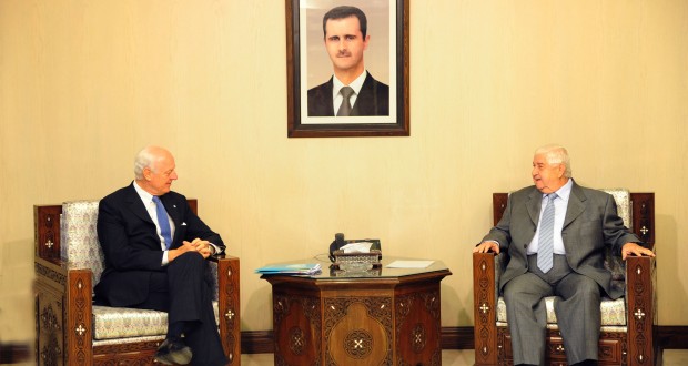 El canciller, Walid al-Moalem ha recibido al enviado especial de la ONU para Siria, Staffan de Mistura y la delegación que le acompaña.
