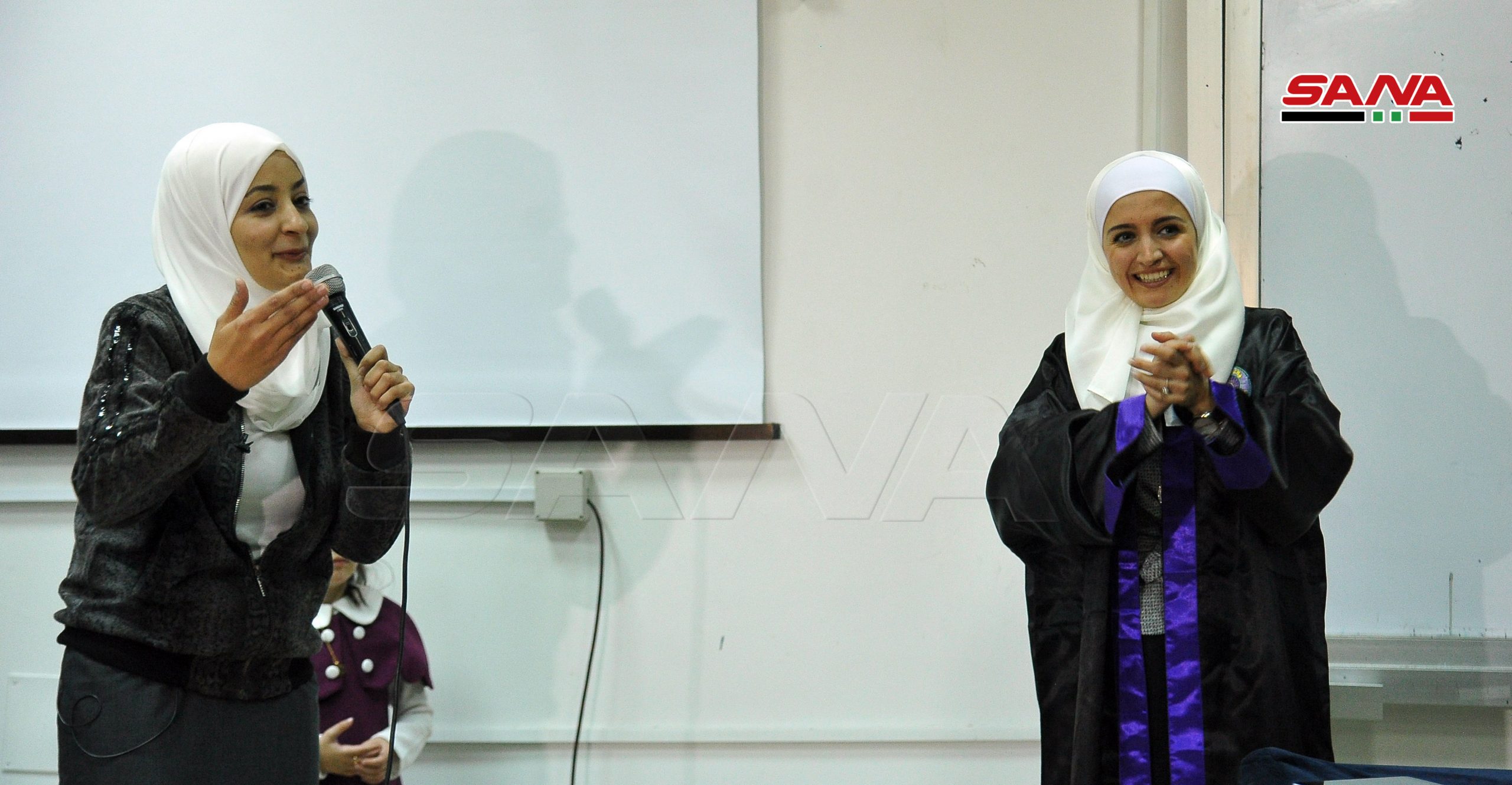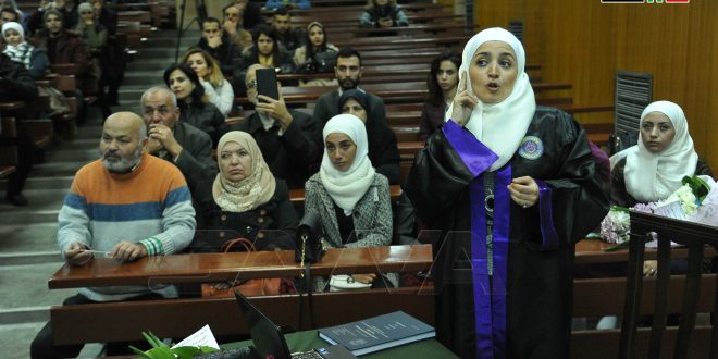 En el anfiteatro de la Facultad de Letras en Damasco la estudiante Huda Haitham Mohamad logró vencer a su discapacidad auditiva donde debatió su tesis titulado “Los Problemas Sociales y Conductuales de los Niños con Discapacidad Auditiva” en el lenguaje de señas y recibió la clasificación de excelente.