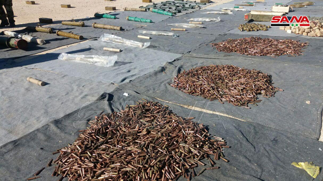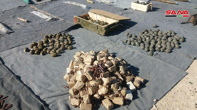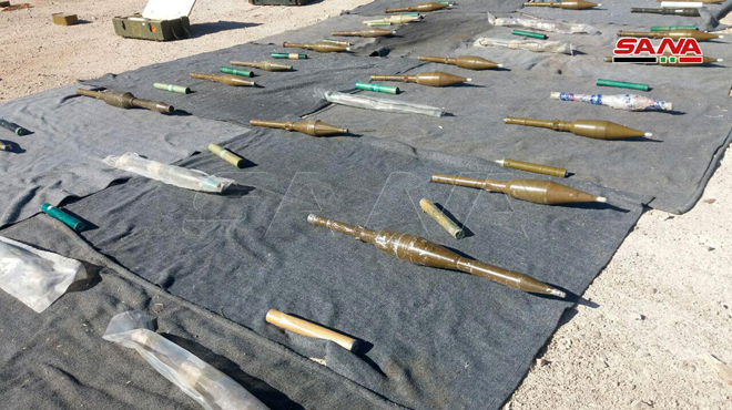 Durante sus operaciones del peinado a las zonas liberadas del terrorismo, los militares sirios hallaron armas y municiones, algunas son de origen israelí, estadounidense y de países de la OTAN lo cual evidencia la implicación de esos países en el apoyo al terrorismo en Siria.