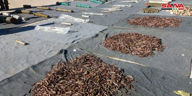 Unidades del ejército incautaron armas y municiones, algunas son de origen israelí remanentes de los terroristas, cerca de la valla de separación con el ocupado Golán, en la provincia de Quneitra.