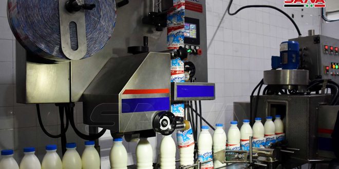 La Empresa Estatal de Productos Lácteos en Homs inauguró hoy una nueva línea de producción de leche esterilizada y saborizada.
