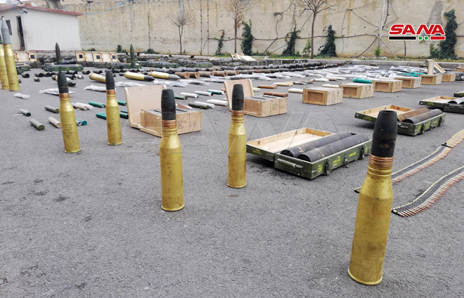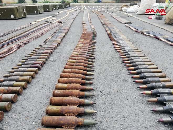 Según el corresponsal de SANA, las armas fueron halladas en depósitos dejados de los extremistas e incluyen decenas de fusiles automáticos, ametralladoras medianas y pesadas, y lanzadores de misiles antiblindados.