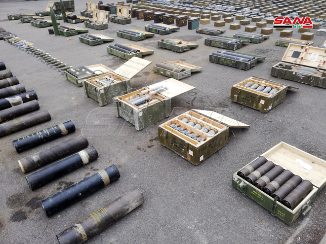 Durante sus operaciones del peinado a las zonas liberadas del terrorismo, los militares sirios hallaron armas y municiones, algunas son de origen israelí, estadounidense y de países de la OTAN lo cual evidencia la implicación de esos países en el apoyo al terrorismo en Siria.