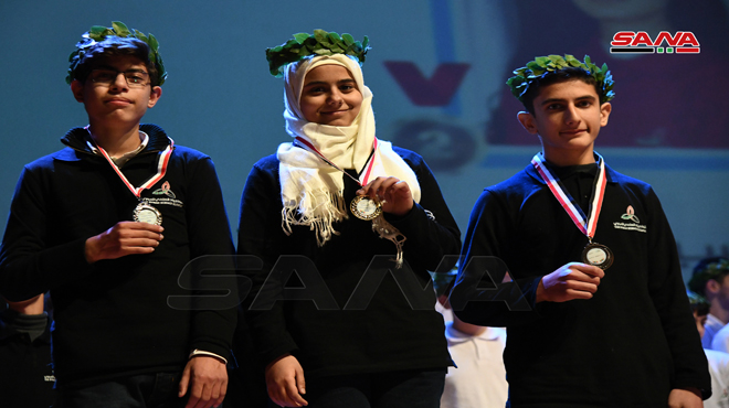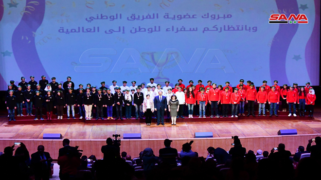 Bajo el auspicio de la Primera Dama, Sra. Asmaa Al-Assad, la Comisión de Excelencia y Creatividad homenajeó a los primeros 15 ganadores de las competencias de la Olimpiada Científica Siria para el año 2019-2020.