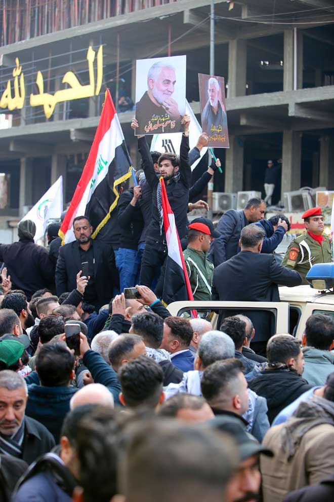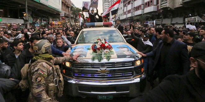 Miles de los iraquíes participaron en la capital, Bagdad, en las ceremonias fúnebres del líder de la Fuerza al-Quds en la Guardia Revolucionaria iraní, el Teniente General Qassem Suleimani y el subcomandante del Cuerpo de Fuerza Popular Iraquí, Abu Mahdi al-Muhandes, quienes perdieron la vida la madrugada del viernes, en una agresión estadounidense con misiles.