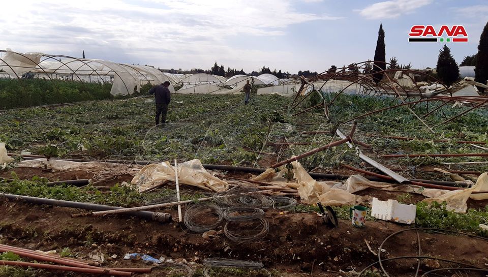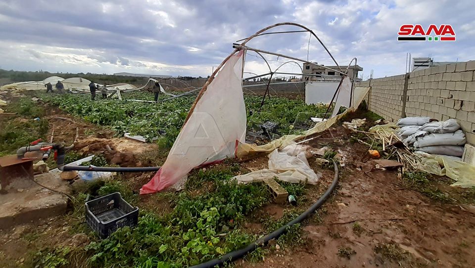06/01/2020 Tartus,SANA Un tornado causa daños a unos 100 invernaderos en la provincia costera de Tartus F.M/W.S 2020-01-06 lluvia
