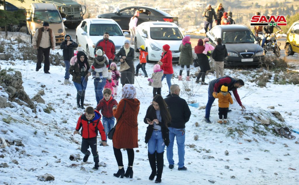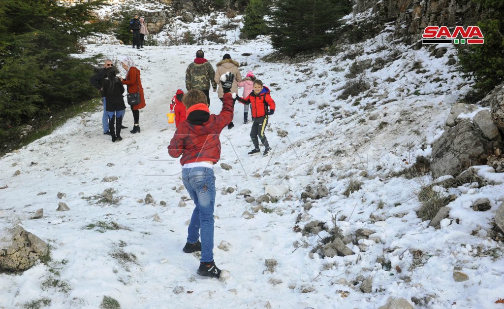 Imágenes de las nevadas en localidad siria de Slinfeh