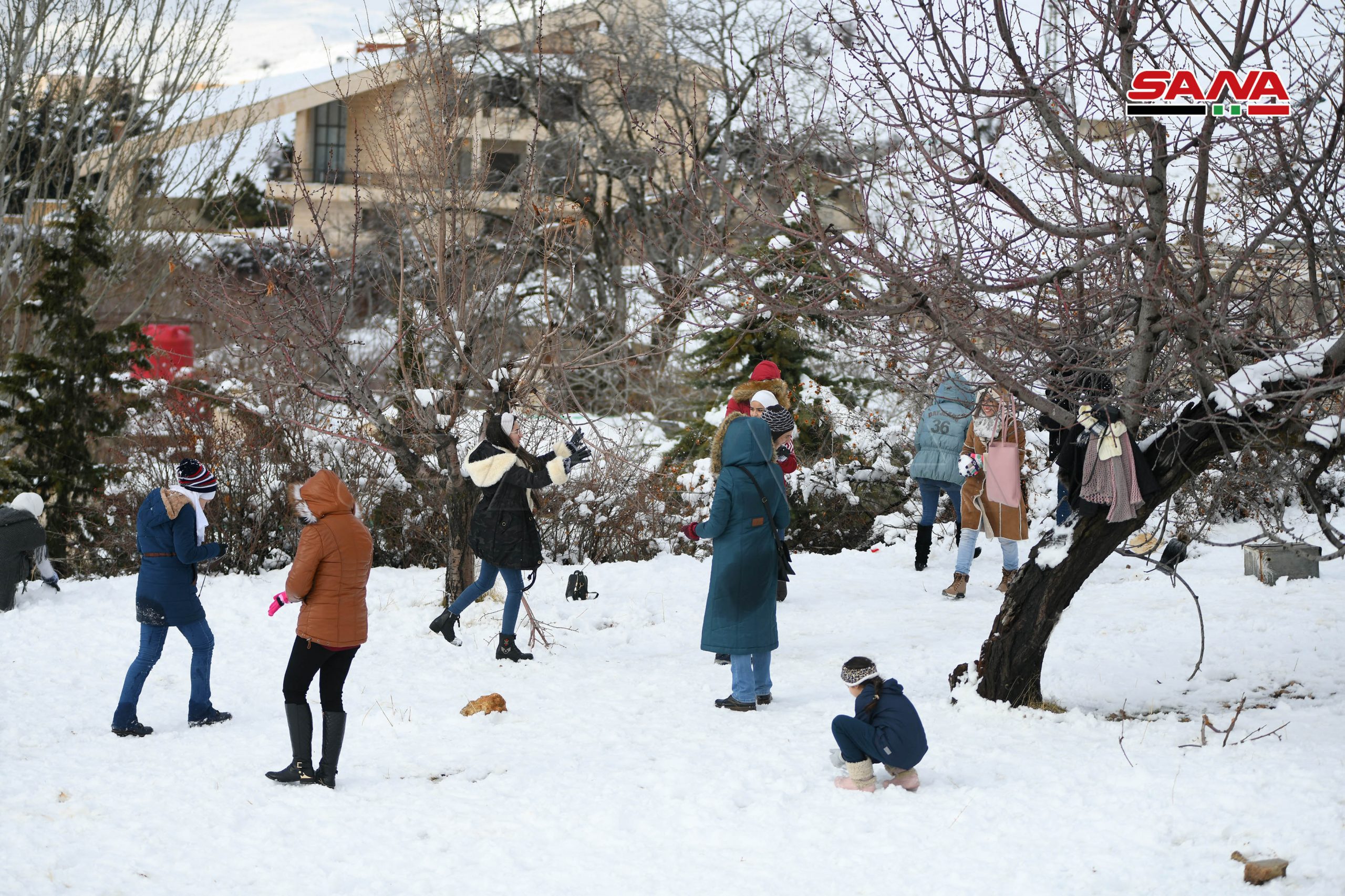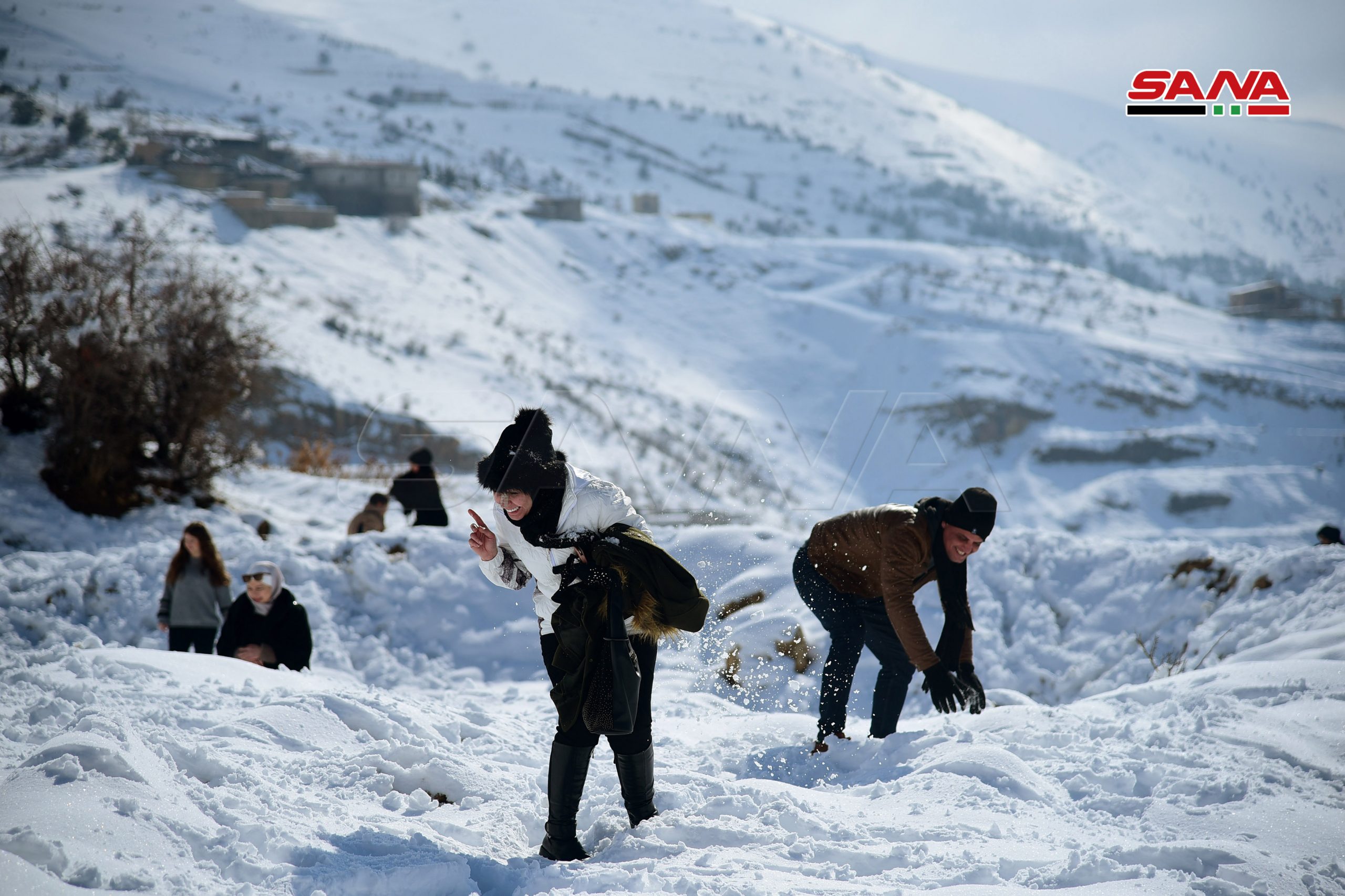 Imágenes de las nevadas en localidad siria de Slinfeh