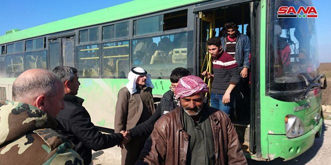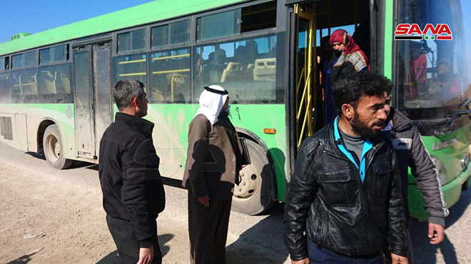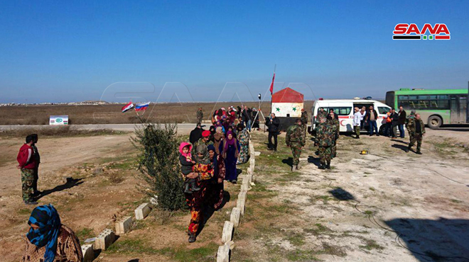 Decenas de civiles salieron de las localidades con presencia de agrupaciones terroristas a través del corredor de Abu al-Duhour en el sur de Idleb y el corredor al-Hader en el sur de Alepo.