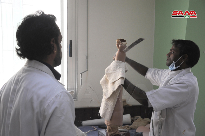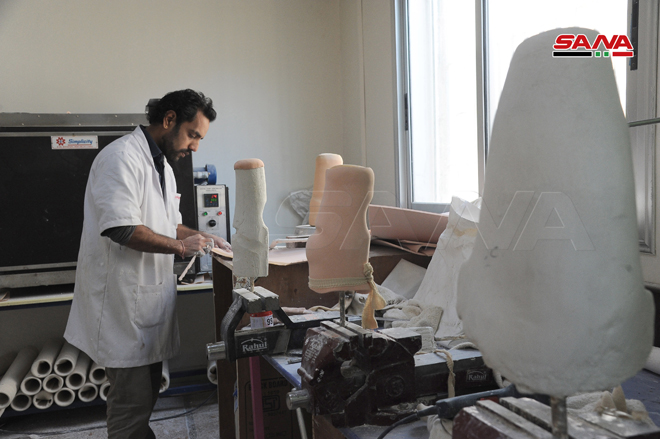 El servicio de prótesis es gratuito en Siria y se ofrece a través de los centros del Ministerio de Salud, el Órgano Militar de Servicios Médicos, la Media Luna Roja Árabe Siria y asociaciones civiles.