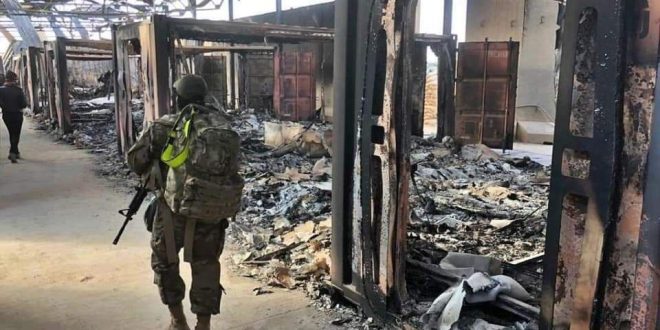 El sitio ruso también publicó a imágenes raras tomadas dentro de la base, cuestionando la versión ofrecida por los medios estadounidenses: “Contrariamente a la historia reportada por el Pentágono de que la base militar norteamericana de Ain al Asad estaba preparada para resistir el ataque con misiles balísticos iraníes, las imágenes muestran una terrible destrucción dentro del campo. En una fotografía tomada por uno de los militares estadounidenses, vemos el arco de un búnker de hormigón agrietado después de la explosión de un misil Qiam, aunque esta parte de la estructura es la más fuerte y se supone que resistiría cualquier impacto directo. Además, la parte que albergaba a los soldados está cubierta de escombros (el punto más alejado del refugio) y en las paredes interiores también el hormigón está destruido (la pared izquierda del refugio).