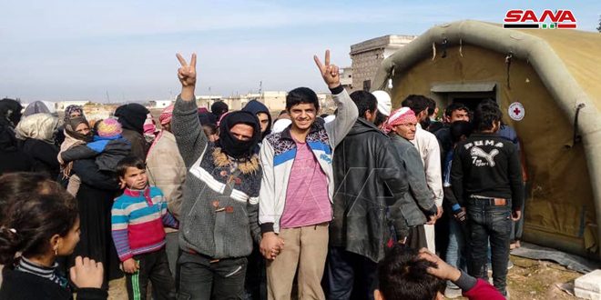 Por tercer día, decenas de civiles comienzan a salir de las zonas con presencia de terroristas en las provincias de Alepo e Idleb a través del corredor humanitario al-Hader.
