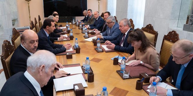 El presidente Bashar al-Assad, recibió hoy al enviado especial del presidente ruso para Siria, Alexander Lavréntiev, y al vicecanciller Sergei Vershinin, y la delegación que los acompaña.