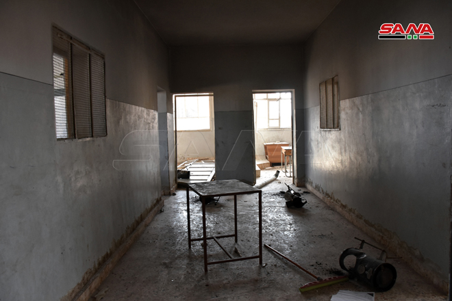 La agencia SANA documentó la destrucción y devastación dejada por terroristas durante los años de su atrincheramiento en la misma.